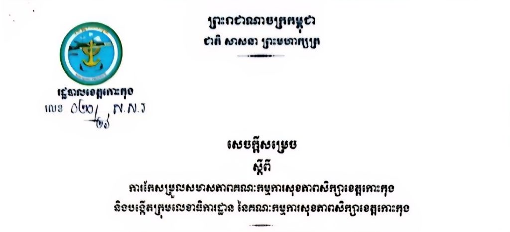 ជាបឋម ខ្ញុំសូមសម្តែងនូវការស្វាគមន៍យ៉ាងកក់ក្តៅចំពោះ ប្រជាពលរដ្ឋ អ្នកធុរៈកិច្ច និងភ្ញៀវទេសរណ៍ទាំងអស់កំពុងប្រើប្រាស់វេបផតថល នៃរដ្ឋបាលខេត្តកោះកុង…
