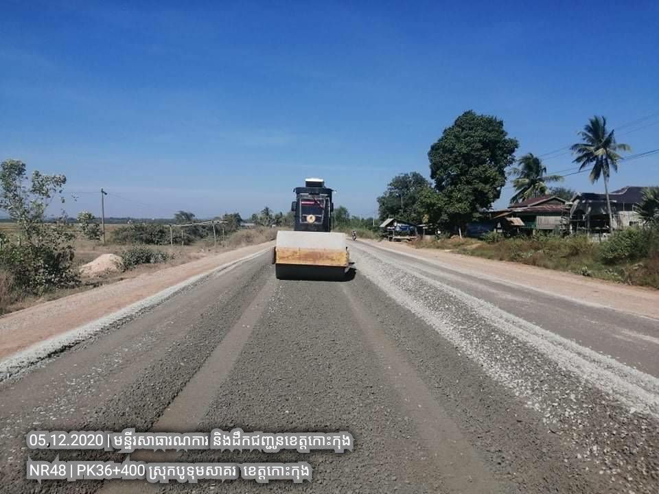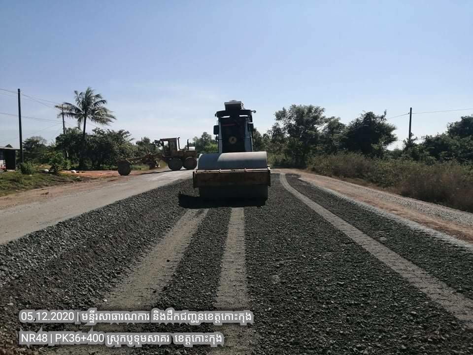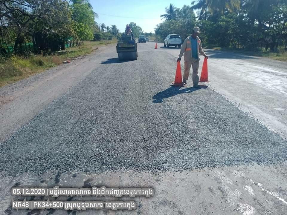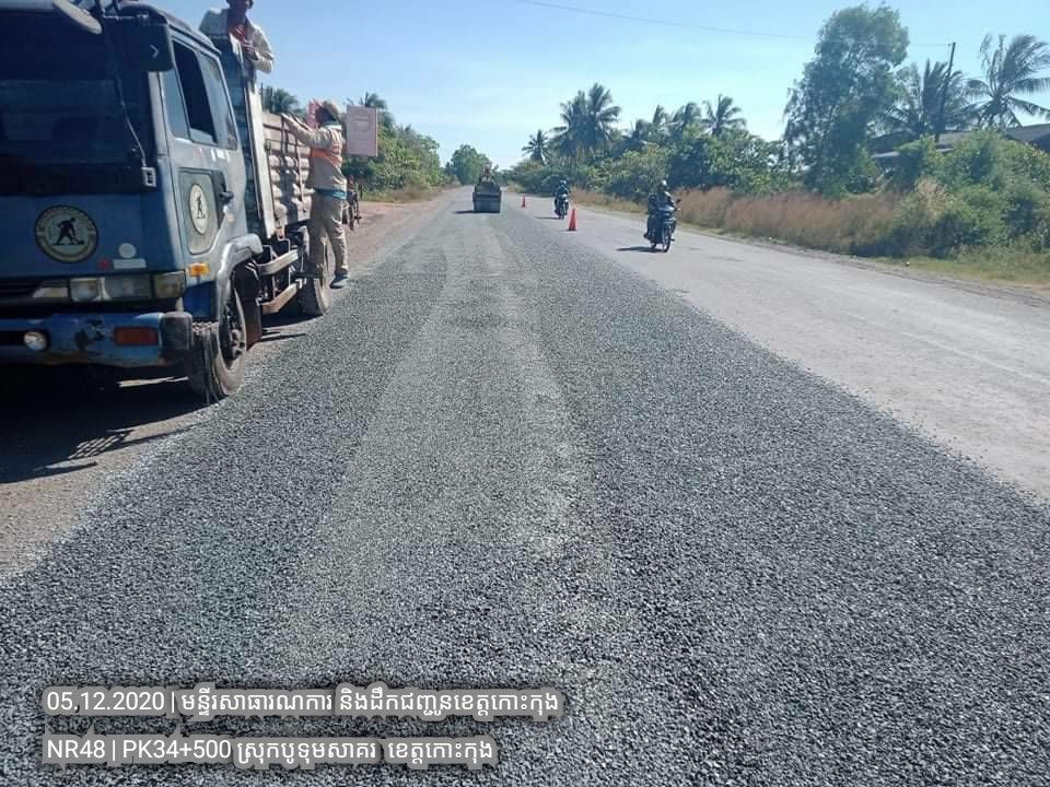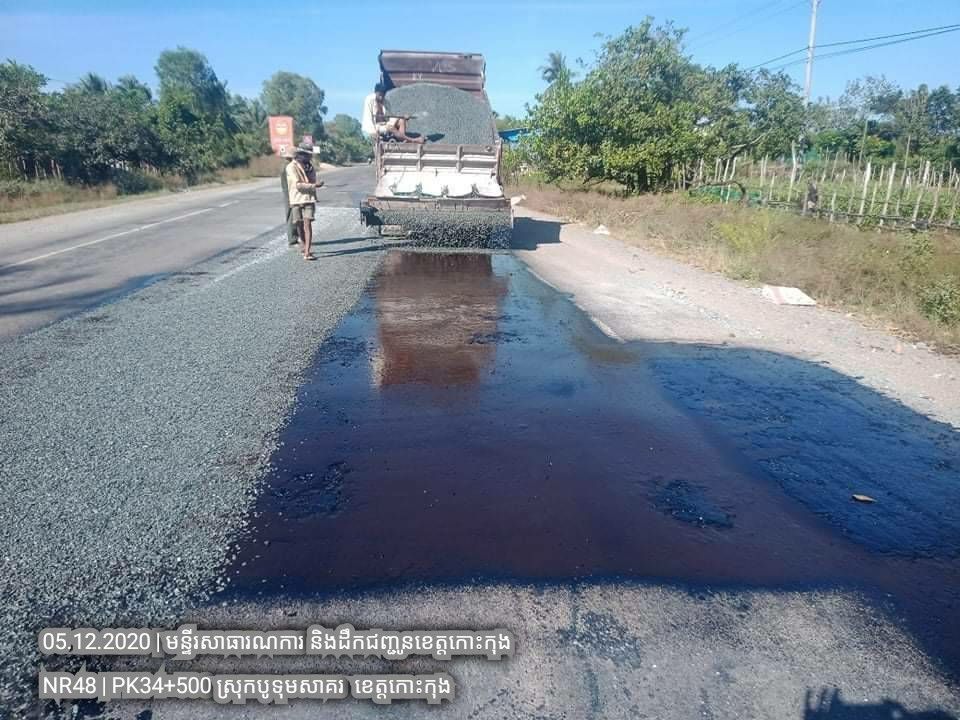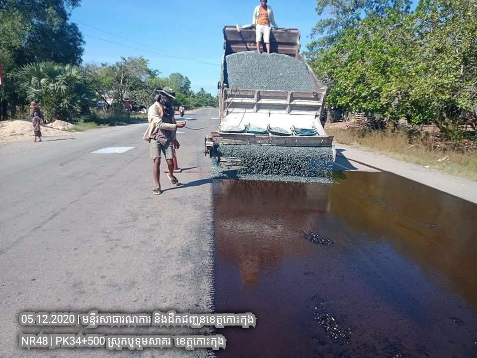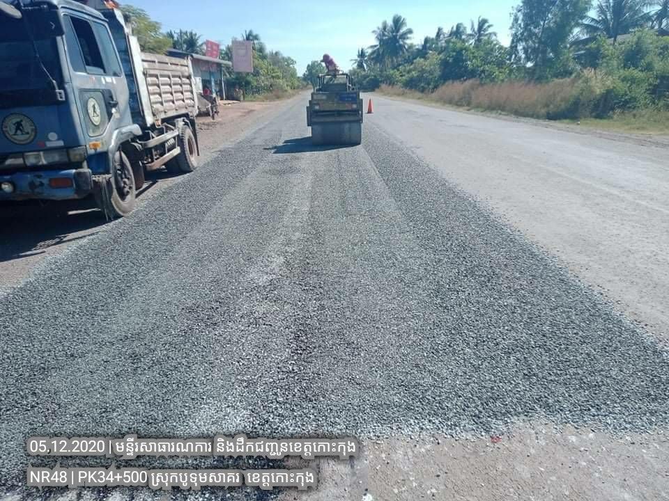 ១. បន្តការងារថែទាំជាប្រចាំលើផ្លូវជាតិលេខ៤៨ សកម្មភាពស្រោចកៅស៊ូ CRS2 រួចរោយថ្ម១២មម លើស្នាមប្រេះស្រកានាគ ត្រង់ចន្លោះគ.ម ៣៤+៥០០