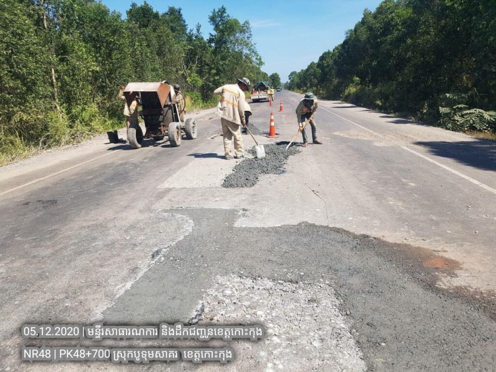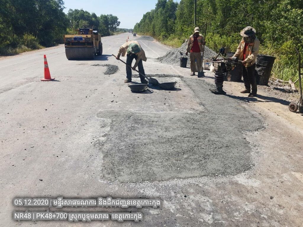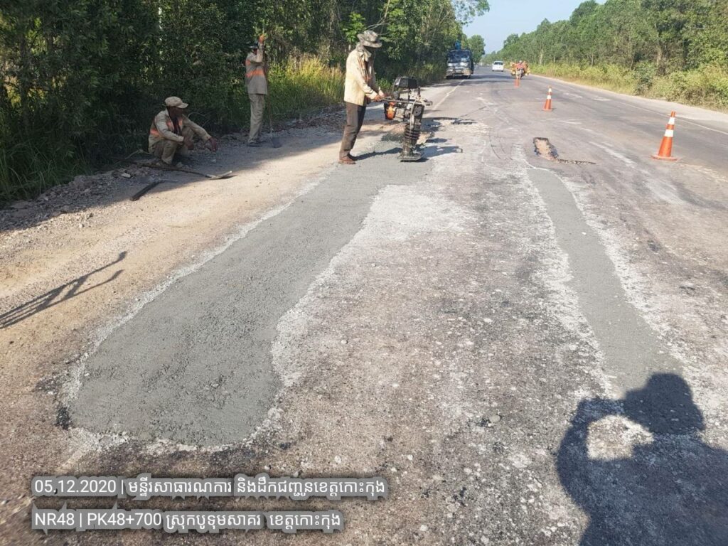 ៣. បន្តការងារថែទាំជាប្រចាំលើផ្លូវជាតិលេខ៤៨ សកម្មភាពជួសជុលសំបុកមាន់ដោយប្រើល្បាយថ្មម៉ិចលាយជាមួយស៊ីម៉ង់ត៏និងកៅស៊ូ CRS2 ត្រង់ គ.ម ៤៨+៧០០