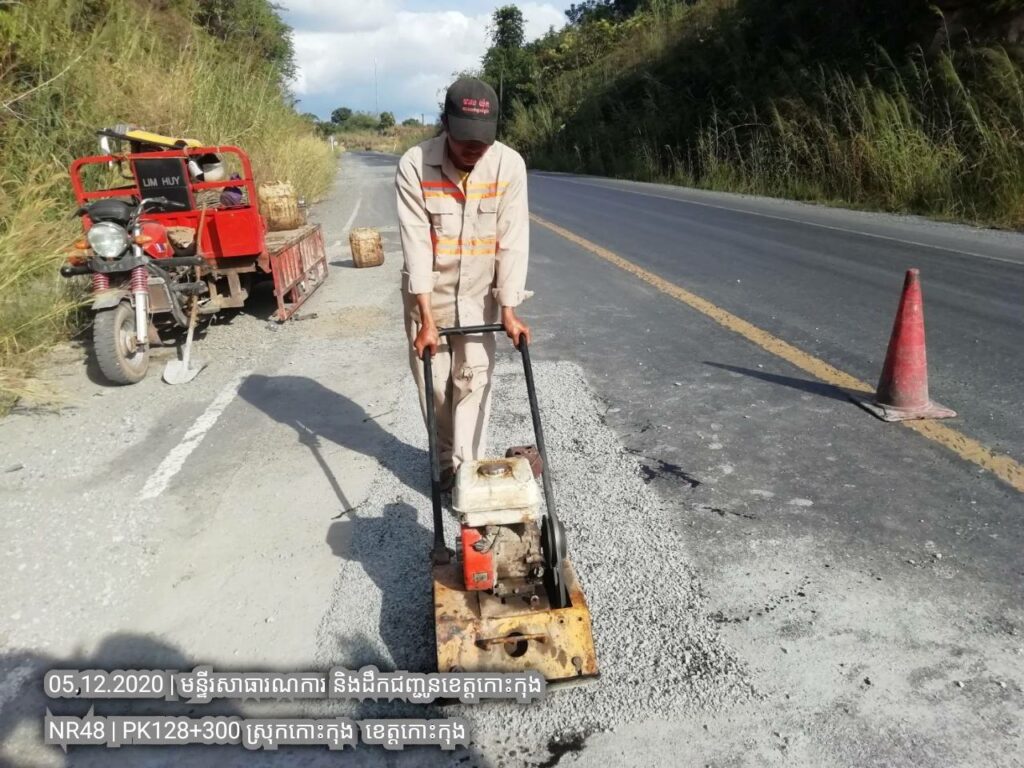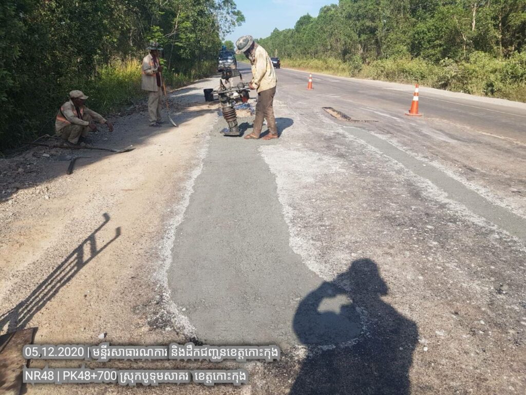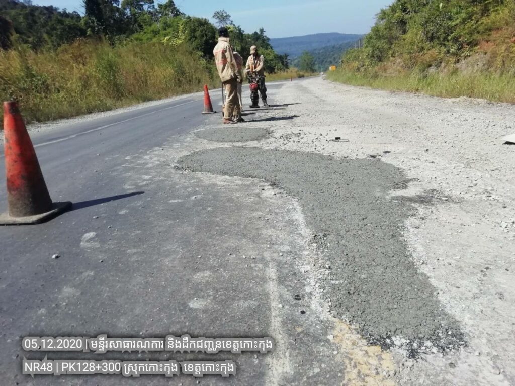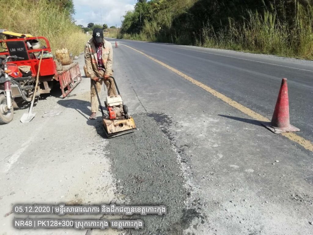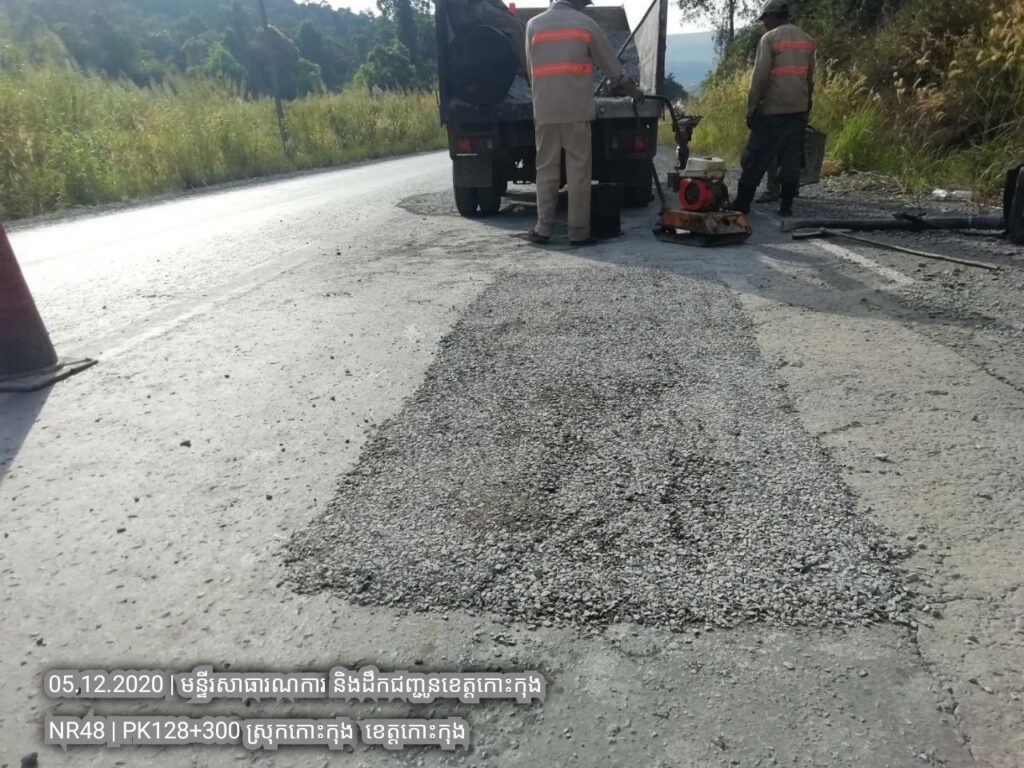 ៤. បន្តការងារថែទាំជាប្រចាំលើផ្លូវជាតិលេខ៤៨ សកម្មភាពជួសជុលសំបុកមាន់ដោយប្រើល្បាយថ្មម៉ិចលាយជាមួយស៊ីម៉ង់ត៏និងកៅស៊ូ CRS2 ត្រង់ គ.ម ១២៨+៣០០ ។