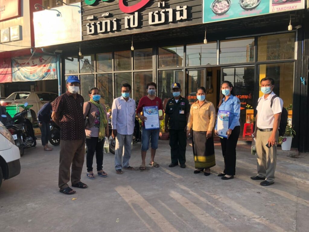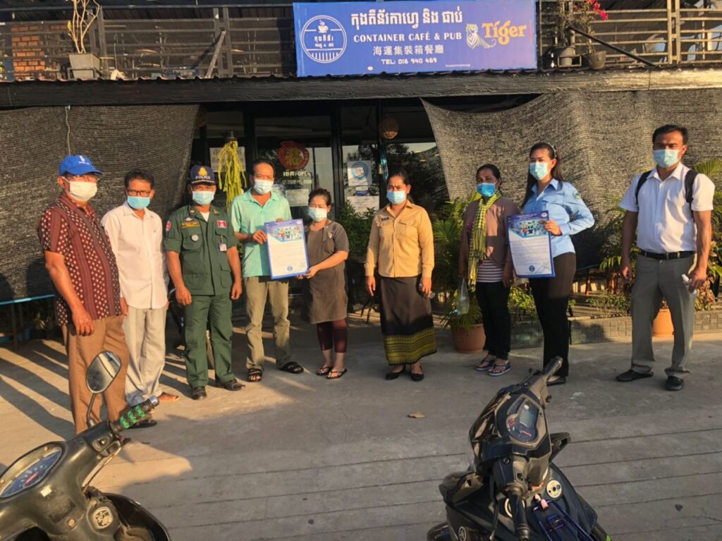 បង្ការទប់ស្កាត់និងការចម្លងជំងឺរលាកសួតវីរុសកូរ៉ូណាប្រភេទថ្មី ឆ្នាំ2019( Covid-19)នៅតាមភោជនីយដ្ឋាន ហាងកាហ្វេរ និងកន្លែងលក់ដូរ អោយអនុវត្តន៍ឲ្យបានតាមវិធានការរបស់រាជរដ្ឋាភិបាល និងក្រសួងសុខាភិបាលយ៉ាងម៉ើងម៉ាត់។