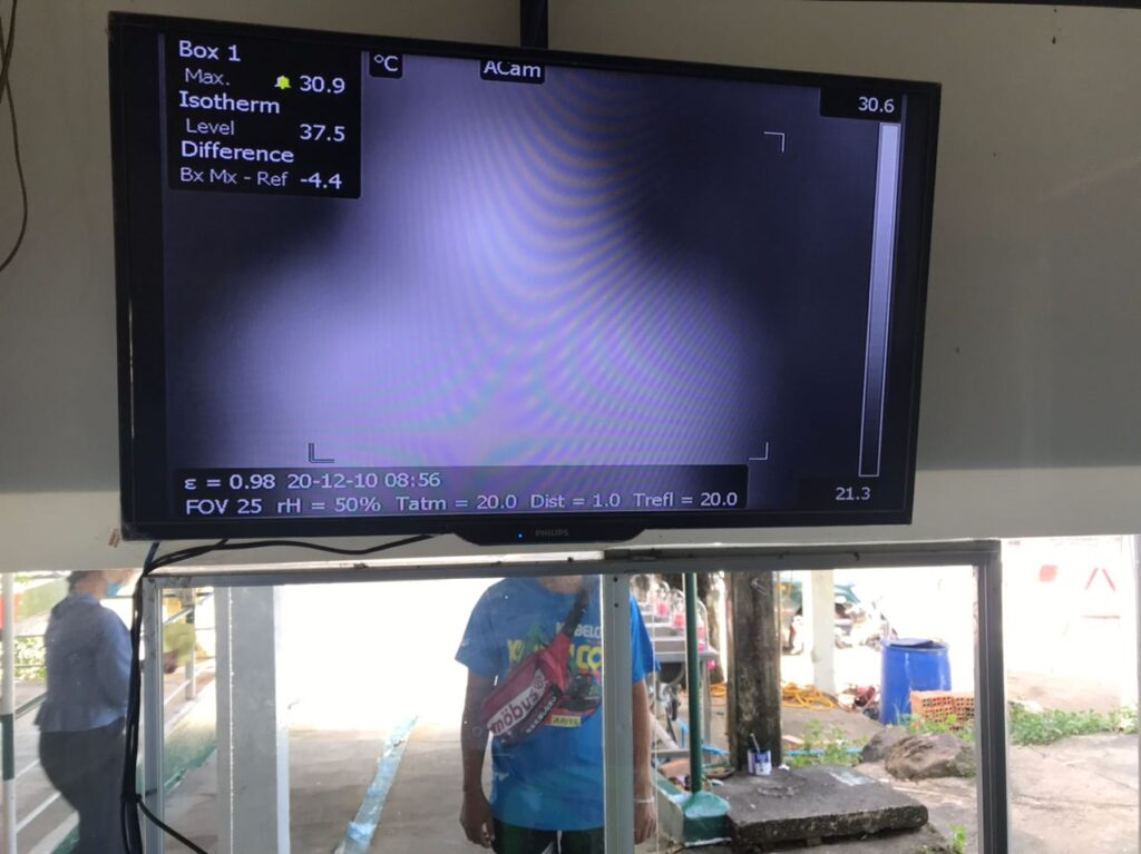 ក្រុមការងារចត្តាឡីស័កនៃមន្ទីរសុខាភិបាលខេត្តកោះកុង បានធ្វើការត្រួតពិនិត្យកំដៅជូនអ្នកបើកបររថយន្តដឹកទំនិញ និពលរដ្ឋថៃចេញ-ចូលតាមច្រកព្រំដែនអន្តរជាតិចាំយាមព្រមជាមួយនឹងការបាញ់ថ្នាំសំលាប់មេរោគទៅលើរថយន្តផងដែរ។