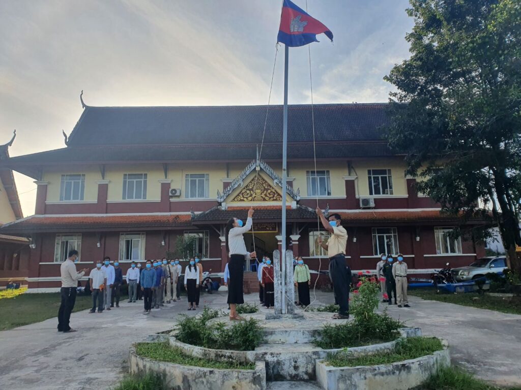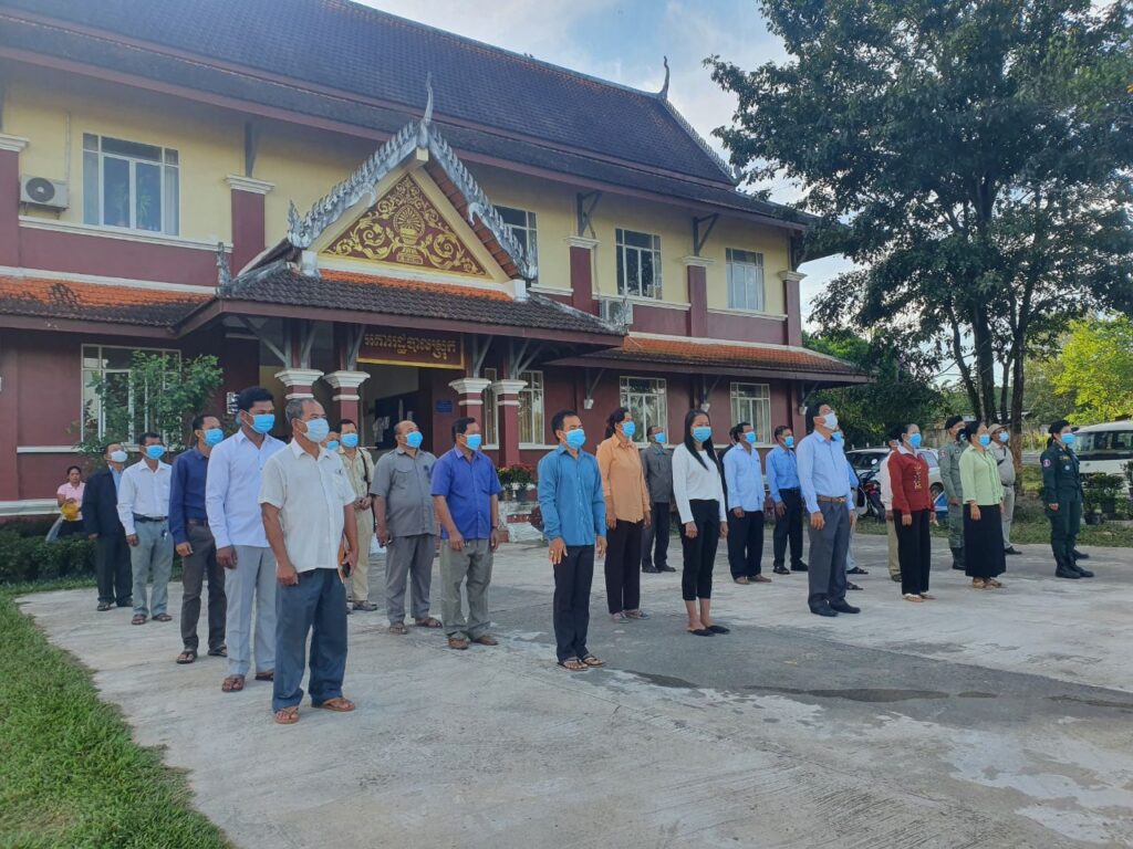 ក្រុមប្រឹក្សាស្រុក គណៈអភិបាលស្រុក និងការិយាល័យចំណុះទាំង១៣របស់រដ្ឋបាលស្រុក កងកម្លាំងប្រដាប់អាវុធ និងប្រជាការពារភូមិបានចូលរួមពិធីគោរពទង់ជាតិរៀងរាល់ព្រឹកថ្ងៃចន្ទ ដើមសប្តាហ៍