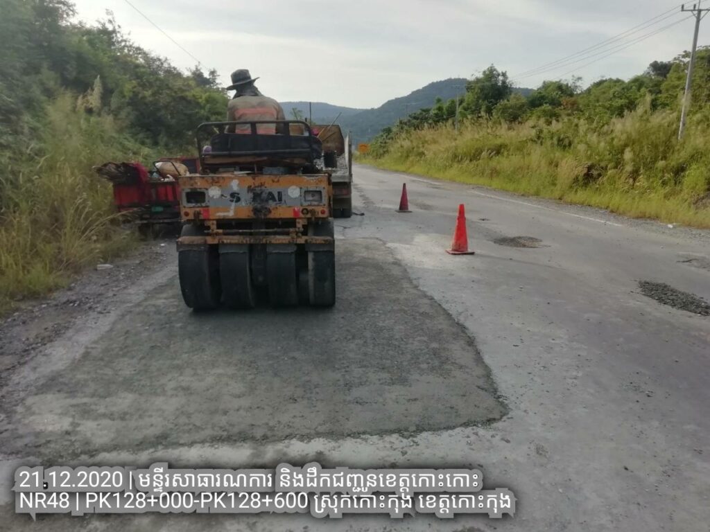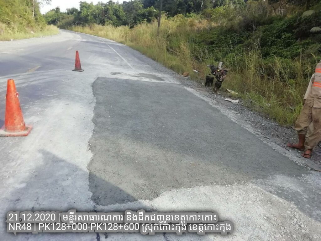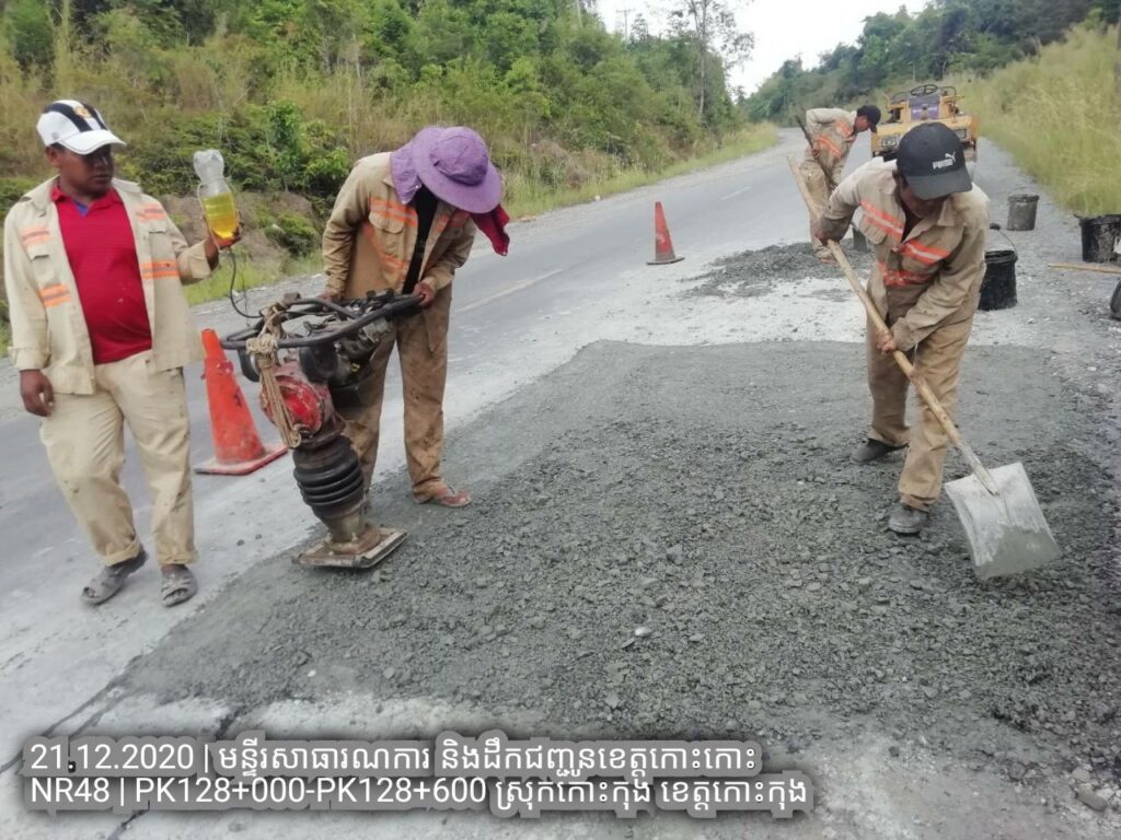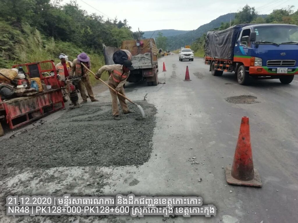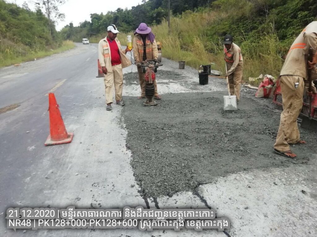២. បន្តការងារថែទាំជាប្រចាំលើផ្លូវជាតិលេខ៤៨ សកម្មភាពជួសជុលសំបុកមាន់ដោយប្រើល្បាយថ្មម៉ិចលាយជាមួយស៊ីម៉ង់ត៏និងកៅស៊ូ CRS2 ត្រង់ គ.ម ១២៨+០០០ – គ.ម ១២៨+៦០០ ។