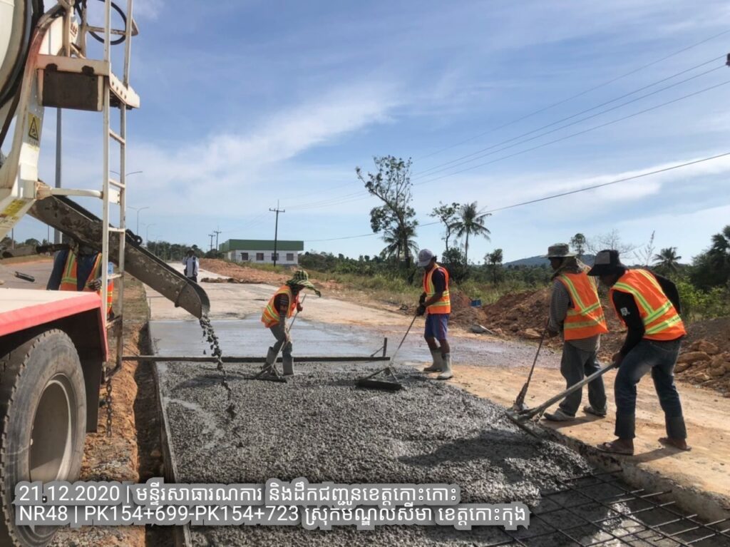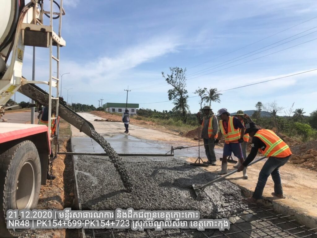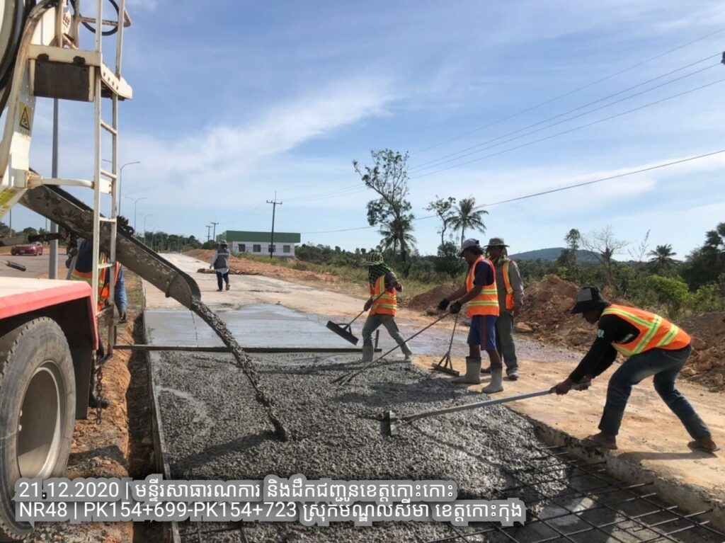 ៣. បន្តការងារថែទាំខួបលើកំណាត់ផ្លូវជាតិលេខ៤៨ សកម្មភាពចាក់បេតុងសសៃដែក លើកំណាត់ទី៤ ចន្លោះគ.ម ១៥៤+៦៩៩ – គ.ម ១៥៤+៧២៣ ។