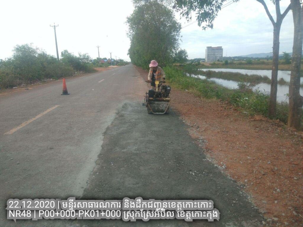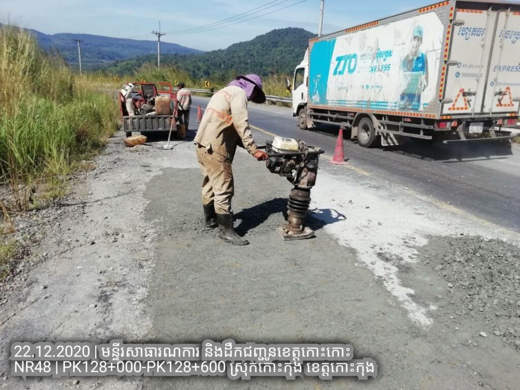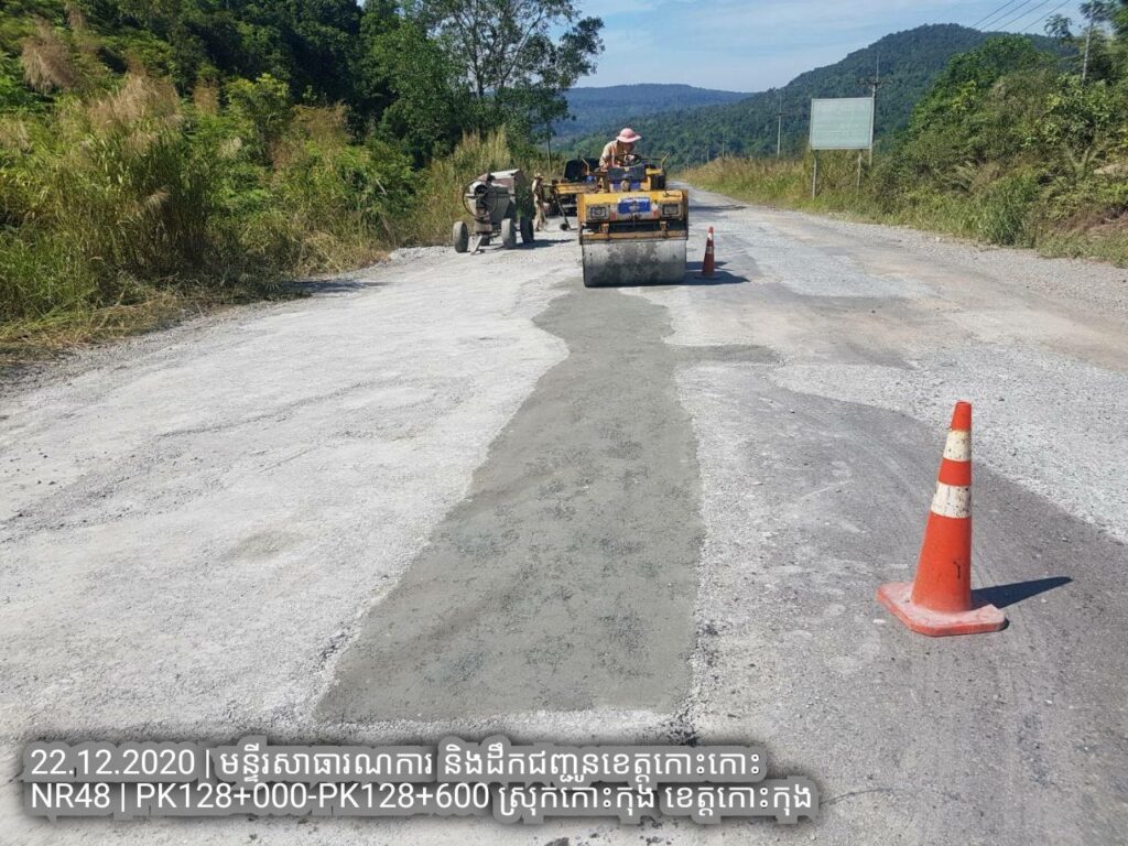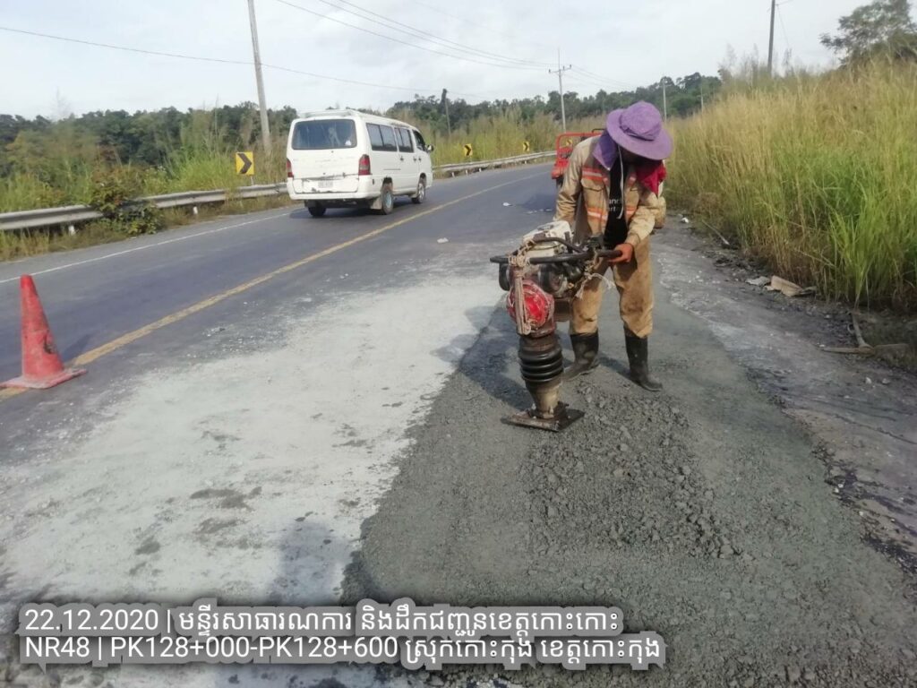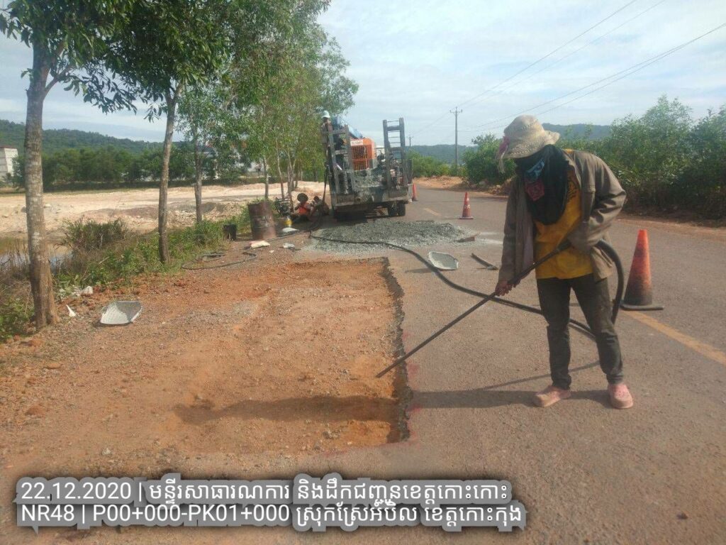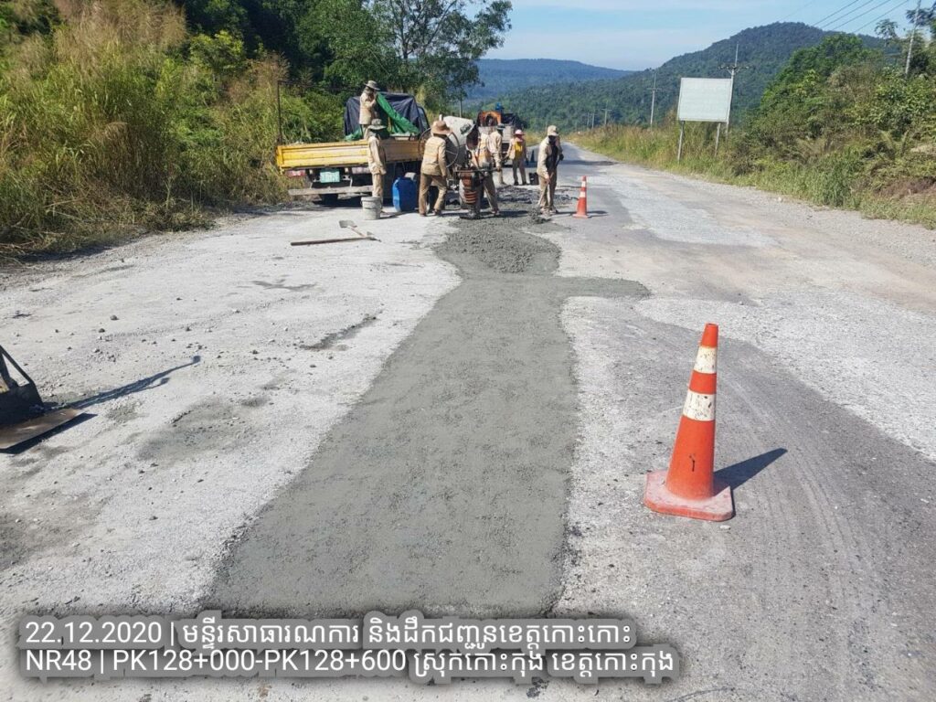 ១.បន្តការងារថែទាំជាប្រចាំលើផ្លូវជាតិលេខ៤៨ សកម្មភាពជួសជុលសំបុកមាន់ដោយប្រើល្បាយថ្មម៉ិចលាយជាមួយស៊ីម៉ង់ត៏និងកៅស៊ូ CRS2 ត្រង់ គ.ម ១២៨+០០០ – គ.ម ១២៨+៦០០