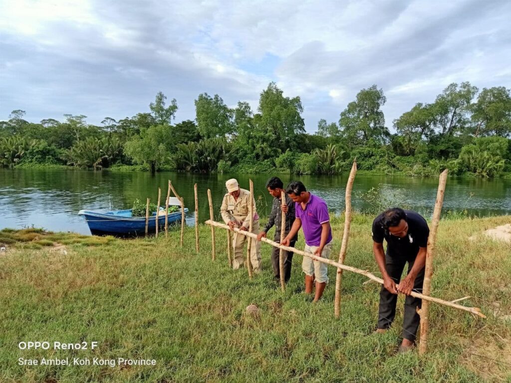 នាយរងផ្នែករដ្ឋបាលជលផលបូទុមសាគរ ០១រូប សហការជាមួយសហគមន៍នេសាទព្រះឣង្គកែវចំនួន ០៣រូប ធ្វើរបងព័ទ្ធពំនូកខ្សាច់ដែលឣណ្តើកហ្លួង ឬឣណ្តើកសរសៃរពងកាលពីរដូវកាលមុន កុំឲ្យសត្វពាហន: ផ្សេងៗចូលបង្កការរំខានដល់ឣណ្តើកហ្លួង ឬឣណ្តើកសរសៃរ មិនហ៊ានចូលមកពងនៅរដូវកាលនេះ ដែលស្ថិតនៅភូមិព្រះអង្គកែវ ឃុំដងពែង ស្រុកស្រែអំបិល ខេត្តកោះកុង។