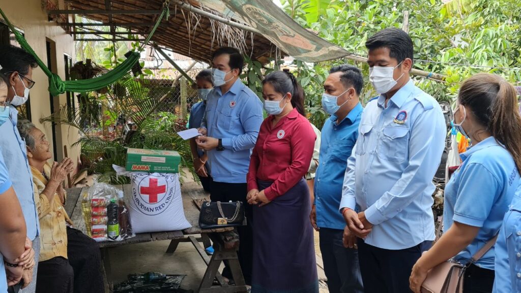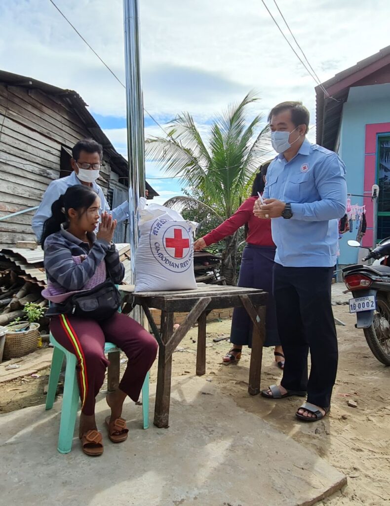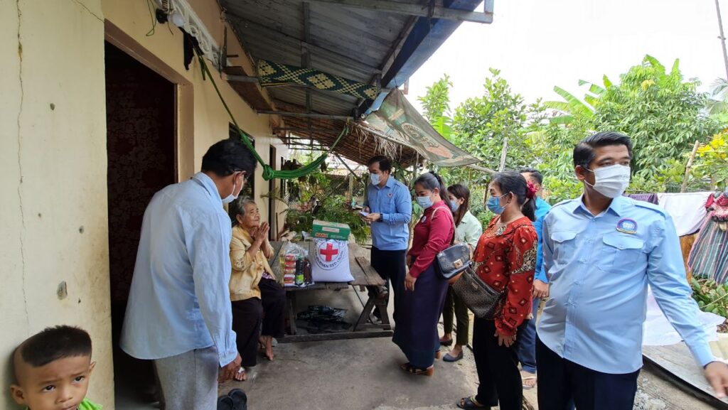 ថ្ងៃពុធ ៩ កើត ខែបុស្ស ឆ្នាំជូត ទោស័ក ពុទ្ធសករាជ ២៥៦៤ ត្រូវនឹងថ្ងៃទី២៣ ខែធ្នូ ឆ្នាំ២០២០:វេលាម៉ោង ៩ ៖ ៣០នាទីព្រឹក លោក ឈេង សុវណ្ណដា អភិបាល នៃគណ:អភិបាលក្រុង និង ជាប្រធានអនុសាខាកាកបាទក្រហមកម្ពុជាក្រុងខេមរភូមិន្ទ រួមដំណើរដោយលោក លោកស្រី អនុប្រធានអនុសាខាកាកបាទក្រហមកម្ពុជា ក្រុងខេមរភូមិន្ទ សហការជាមួយរដ្ឋបាលសង្កាត់ ,ភូមិ ព្រមទាំងយុវជនសហភាពសហព័ន្ធយុវជនកម្ពុជា ស.ស.យ.ក.ខេត្ត និង ស.ស.យ.ក. ក្រុងខេមរភូមិន្ទ បានចុះសំណេះសំណាល សួរសុខទុក្ខ និងចែកអំណោយមនុស្សធម៌ដល់គ្រួសារក្រីក្រ , ចាស់ជរា , ពិការ និងគ្រួសាររងគ្រោះខ្យល់កន្រ្តាក់ ចំនួន០៥គ្រួសារ នៅសង្កាត់ស្មាច់មានជ័យ ក្នុងនោះស្ថិតក្នុង ៖