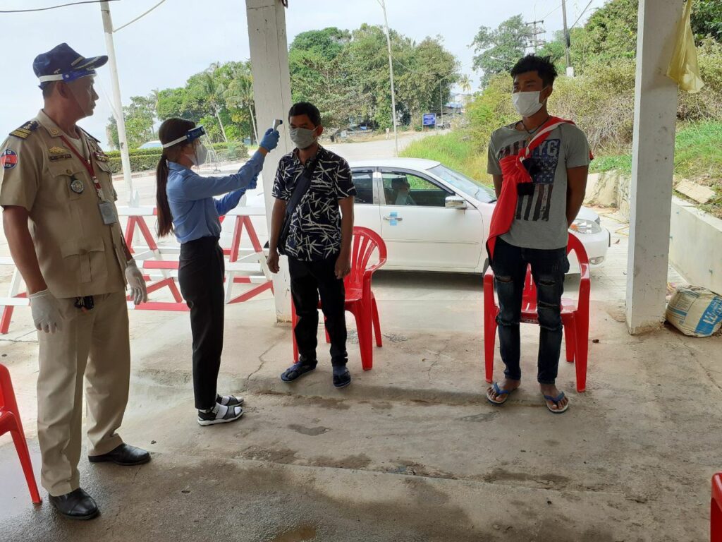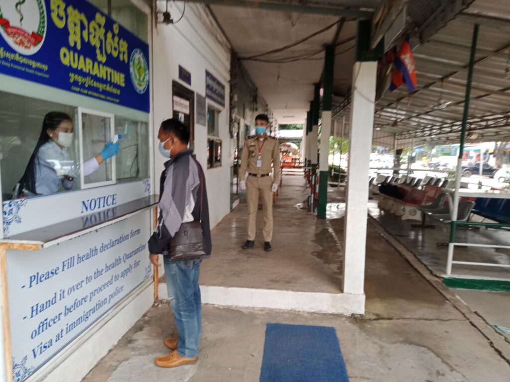 ក្រុមការងារចត្តាឡីស័កនៃមន្ទីរសុខាភិបាលខេត្តកោះកុង បានធ្វើការត្រួតពិនិត្យកំដៅជូនអ្នកបើកបររថយន្តដឹកទំនិញ អ្នកដំណើរជនជាតិខ្មែរនិងថៃចេញ-ចូលតាមច្រកព្រំដែនអន្តរជាតិចាំយាមព្រមជាមួយនឹងការបាញ់ថ្នាំសំលាប់មេរោគទៅលើរថយន្តផងដែរ។