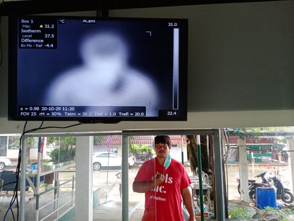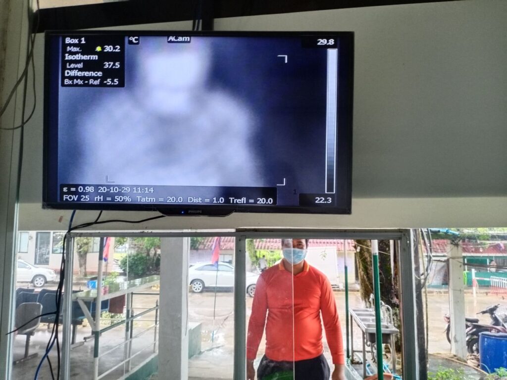 ក្រុមការងារចត្តាឡីស័កនៃមន្ទីរសុខាភិបាលខេត្តកោះកុង បានធ្វើការត្រួតពិនិត្យកំដៅជូនអ្នកបើកបររថយន្តដឹកទំនិញ និងអ្នកដំណើរជនជាតិខ្មែរចេញ-ចូលតាមច្រកព្រំដែនអន្តរជាតិចាំយាមព្រមជាមួយនឹងការបាញ់ថ្នាំសំលាប់មេរោគទៅលើរថយន្តផងដែរ។