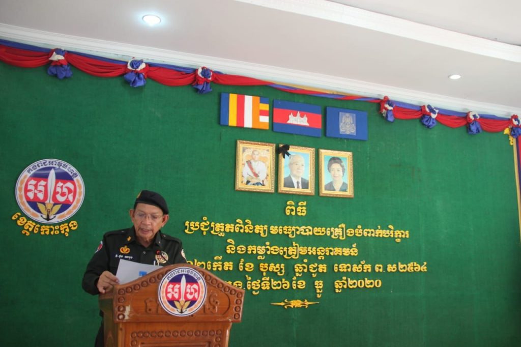 នៅទីបញ្ជាការដ្ឋាកងរាជអាវុធហត្ថខេត្តកោះកុង បានប្រជុំត្រួតពិនិត្យ មធ្យោបាយគ្រឿងបំពាក់ បរិក្ខារ និងកម្លាំងត្រៀមអន្តរាគមន៍ ក្រោមអធិបតីភាព លោកឧត្តមសេនីយ៍ទោ ស សំបូរធន នាយសេនាធិការកងរាជអាវុធហត្ថលើផ្ទៃប្រទេស តំណាងដ៏ខ្ពង់ខ្ពស់លោកនាយឧត្តមសេនីយ៍ សៅ សុខា អគ្គមេបញ្ជាការរងកងយោធពលខេមរភូមិន្ទ និងមេបញ្ជាការកងរាជអាវុធហត្ថលើផ្ទៃប្រទេស។