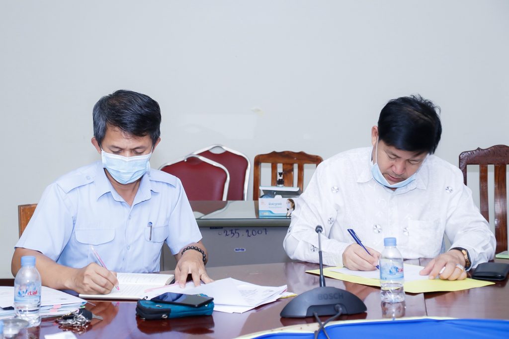 លោក សុខ សុទ្ធី អភិបាលរង នៃគណៈអភិបាលខេត្តកោះកុង និងលោក ប៊ូ រតន: ជំនួយការឯកឧត្តម ឌី វិជ្ជា បានដឹកនាំកិច្ចប្រជុំ ស្តីពីការអនុញ្ញាតចាក់បំពេញអាចម៍ដីកម្មសិទ្ធិឯកជន ០១កន្លែងរបស់ លោក ម៉ា ទី ជាអ្នកស្នើសូម។