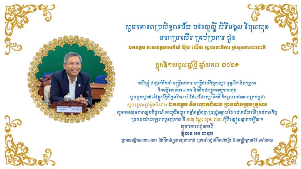 លោក អន ដាវុធ ប្រធានមន្ទីរសាធារណការ និងដឹកជញ្ជូនខេត្តកោះកុង ផ្ញើសារជូនពរ ឯកឧត្តម នាយឧត្តមសេនីយ៍ ប៊ុន លើត រដ្ឋលេខាធិការ ក្រសួងការពារជាតិ