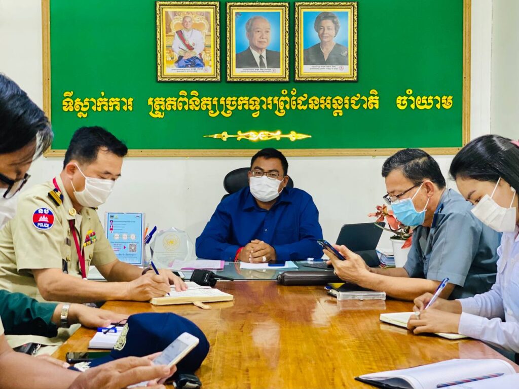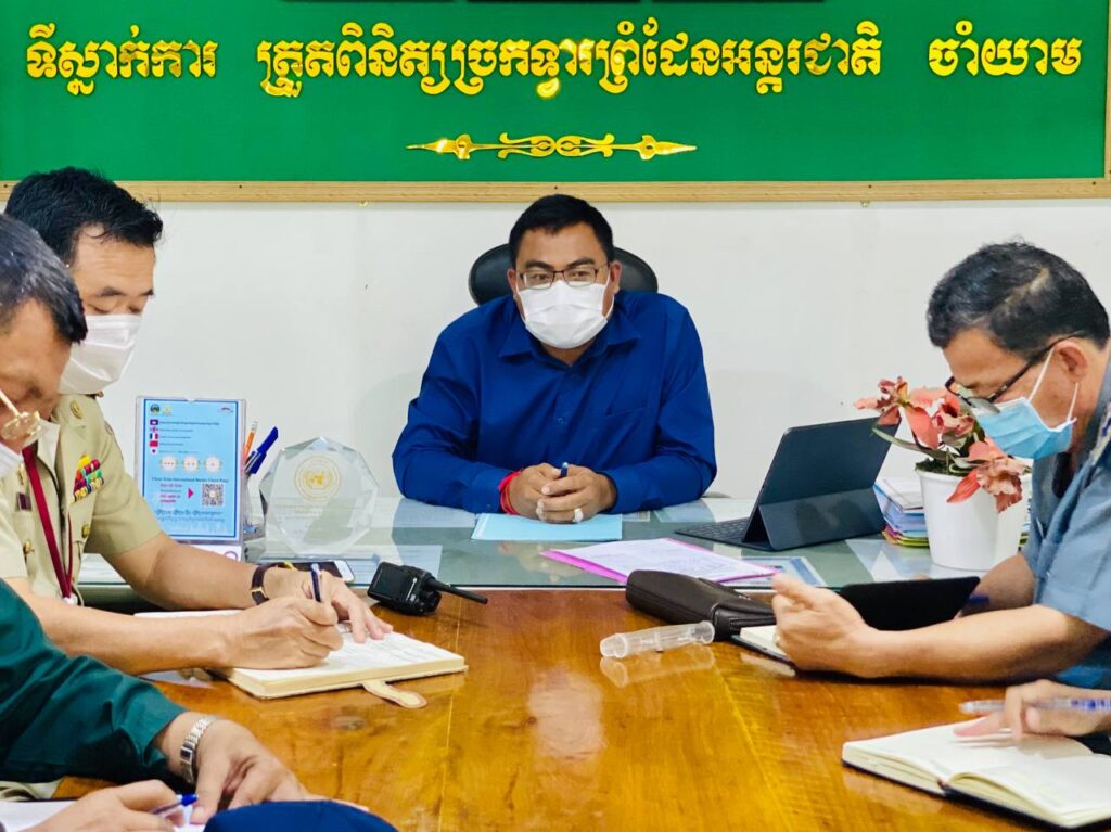 លោក សុវណ្ណ ប៊ុនធឿន ប្រធានទីស្នាក់ការត្រួតពិនិត្យច្រកទ្វារព្រំដែនអន្តរជាតិចាំយាម បានដឹកនាំកិច្ចប្រជុំការងារចាំបាច់មួយចំនួន និងការទប់ស្កាត់ជម្ងឺកូវីដ-១៩ តាមការណែនាំរបស់ក្រសួងសុខាភិបាល