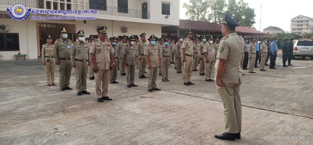 លោកឧត្ដមសេនីយ៍ត្រី ស​ សារ៉ាត ស្នងការ​រង​ ផែនការ​ងារ​សេនា​ធិ​ការ​ តំណាង​លោក​ឧត្ដមសេនីយ៍​ស្នងការនគរបាល​ខេត្ត​​​ បាន​ដឹកនាំ​កងកម្លាំង​ គោរព​ទង់​ជាតិ​ និងបានផ្សព្វផ្សាយ​ដល់​កង​កម្លាំង​ ការ​ពង្រឹង​វិន័យ​ ០០៦​ និងរួម​គ្នា​ទប់​ស្កាត់​ នៃ​ជម្ងឺ​រលាក​ផ្លូវ​ដង្ហើម​ប្រភេទ​ថ្មី​ Covid-19 ។