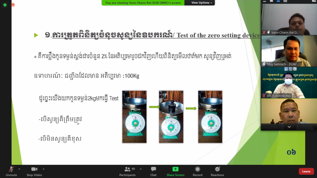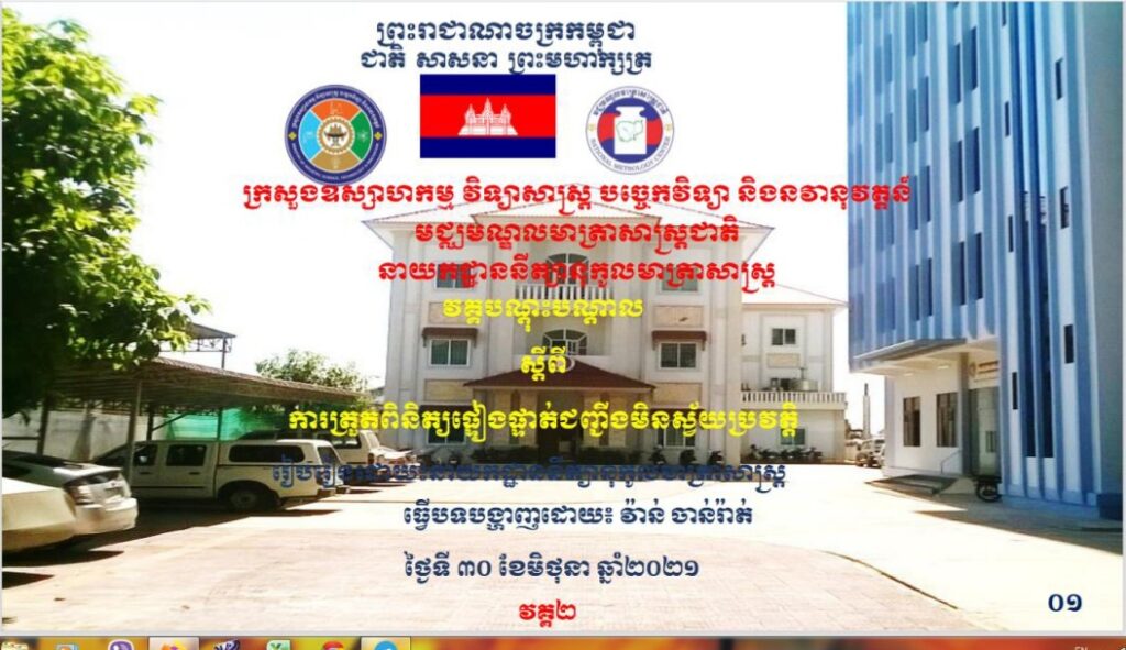 ថ្នាក់ដឹកនាំ និងមន្ត្រីជំនាញ នៃមន្ទីរឧស្សាហកម្ម វិទ្យាសាស្រ្ត បច្ចេកវិទ្យា និងនវានុវត្តន៍ខេត្តកោះកុង បានចូលរួមវគ្គបណ្តុះបណ្តាលស្តីពីការត្រួតពិនិត្យផ្ទៀងផ្ទាត់ជញ្ជីងមិស្វ័យប្រវត្តិបន្ត ដែលរៀបចំដោយមជ្ឈមណ្ឌលមាត្រាសាស្ត្រជាតិ ក្រោមអធិបតីភាពរបស់ ឯកឧត្តម ជួន វន រដ្ឋលេខាធិការនៃក្រសួង តាមរយៈvideos conference ដោយមានការចូលរួមពីមន្ទីរឧស្សាហកម្ម វិទ្យាសាស្រ្ត បច្ចេកវិទ្យា និងនវានុវត្តន៍ទាំង២៥រាជធានី-ខេត្ត។