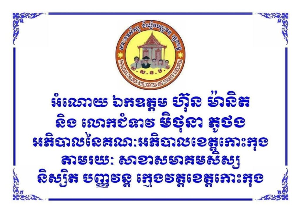 សកម្មភាពមនុស្សធម៌របស់សាខាសមាគមសិស្ស និស្សិតបញ្ញវន្ត ក្មេងវត្ត ខេត្តកោះកុង