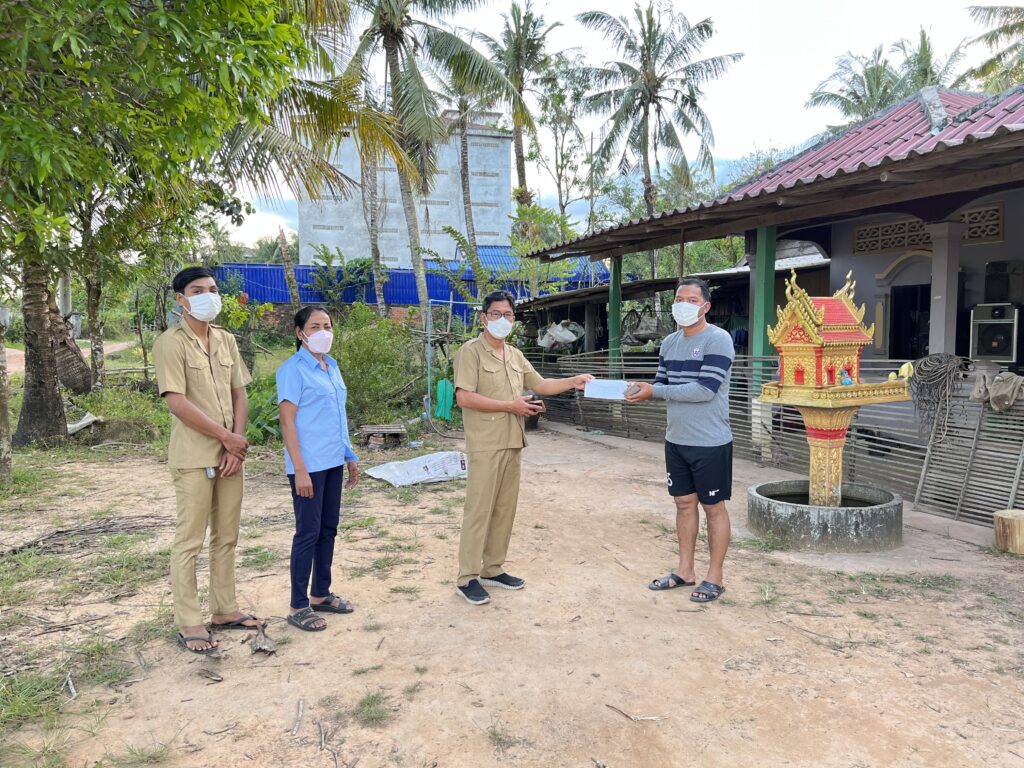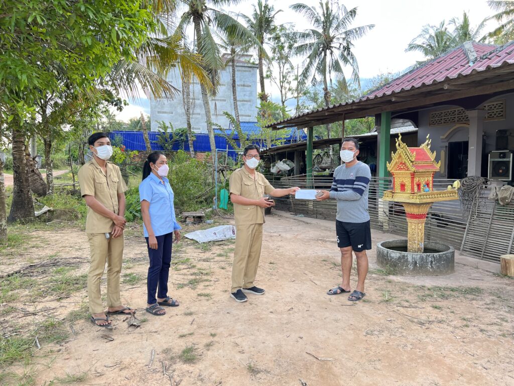 វេលាម៉ោង០៥: ០០នាទីរសៀល លោក ហាក់ ឡេង អភិបាល នៃគណ:អភិបាលស្រុក អមដំណើរដោយលោកស្រី អ៉ិន សោភ័ណ្ឌ អភិបាលរងស្រុក ព្រមទាំងមន្ត្រីក្រោមឱវាទ បានចុះសួរសុខទុក្ខ និងផ្តល់ថវិកាផ្ទាល់ខ្លួនរបស់លោក អភិបាលស្រុក ជូន លោក ខេង គង់ នាយករដ្ឋបាល ដែលមានវិជ្ជមាន កូវិដ-១៩ កាលពីថ្ងៃទី០៤ ខែធ្នូ ឆ្នាំ២០២១