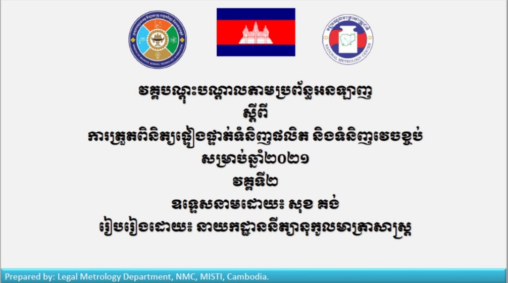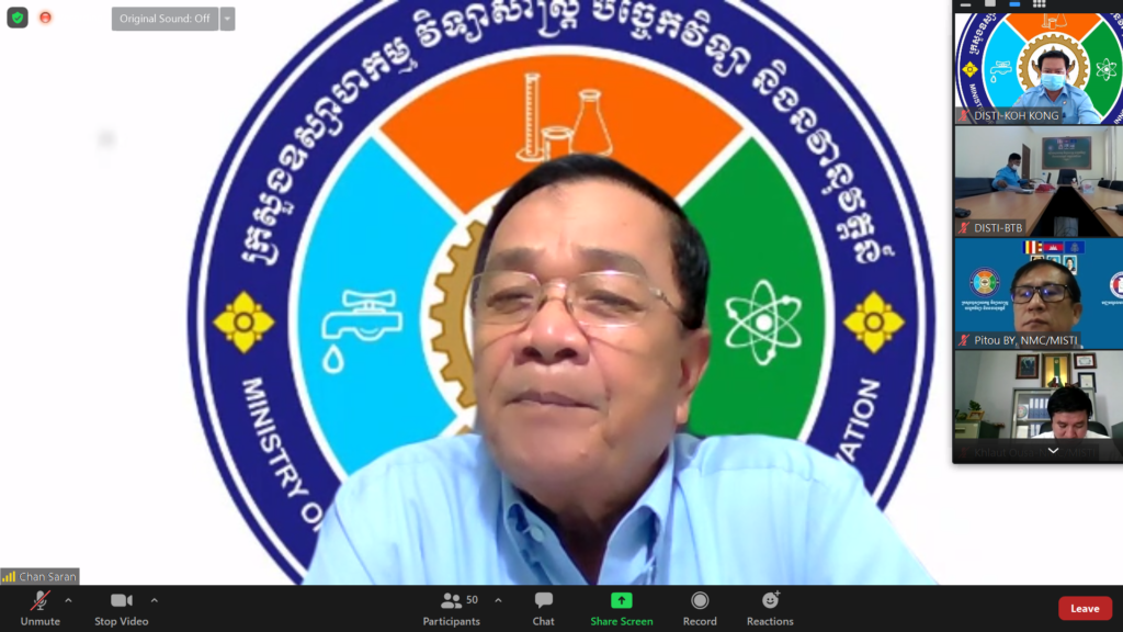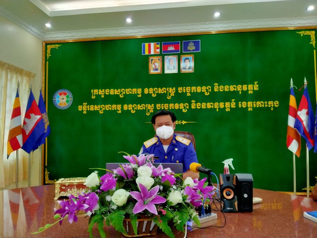 ថ្នាក់ដឹកនាំ និងមន្ត្រីជំនាញការិយាល័យស្តង់ដារ និងមាត្រាសាស្ត្រ នៃមន្ទីរឧស្សាហកម្ម វិទ្យាសាស្រ្ត បច្ចេកវិទ្យា និងនវានុវត្តន៍ខេត្តកោះកុង ចូលរួមវគ្គបណ្តុះបណ្តាលស្តីពីការត្រួតពិនិត្យផ្ទៀងផ្ទាត់ទំនិញផលិត និងទំនិញវេចខ្ចប់(ត) ក្រោមអធិបតីភាពដ៏ខ្ពង់ខ្ពស់ ឯកឧត្តម ជួន វន រដ្ឋលេខាធិការនៃក្រសួងឧវបន តាមរយៈប្រពន្ធ័អនឡាញ (Zoom Cloud Meeting) និងមានការចូលរួមពីមន្ទីរឧស្សាហកម្ម វិទ្យាសាស្រ្ត បច្ចេកវិទ្យា និងនវានុវត្តន៍ទាំង25 រាជធានី-ខេត្ត។