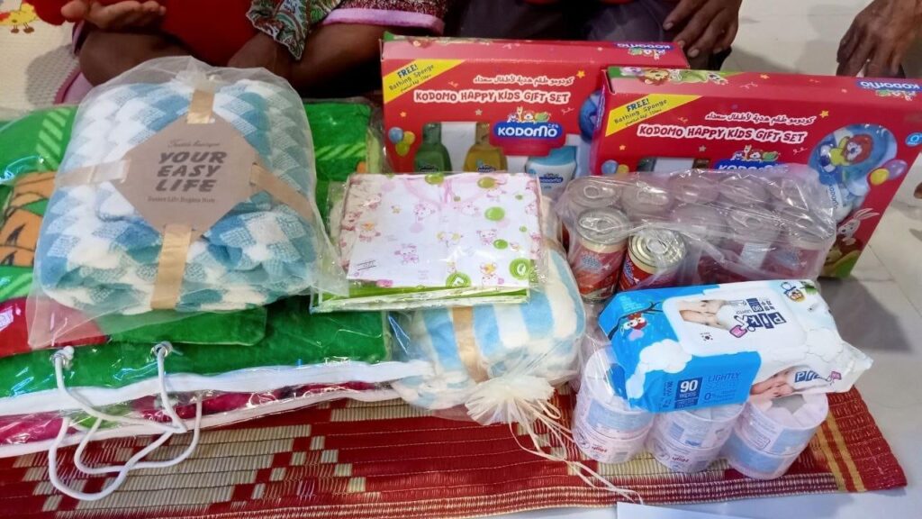 -កន្សែងពោះគោចំនួន ០២ឈុត ក្រដាសសើម ១ដុំ ទឹកដោះគោឆៅ១ឡូ ត្រីខ ចំនួន ០១ឡូ និងថវិការចំនួន ១០០,០០០៛។