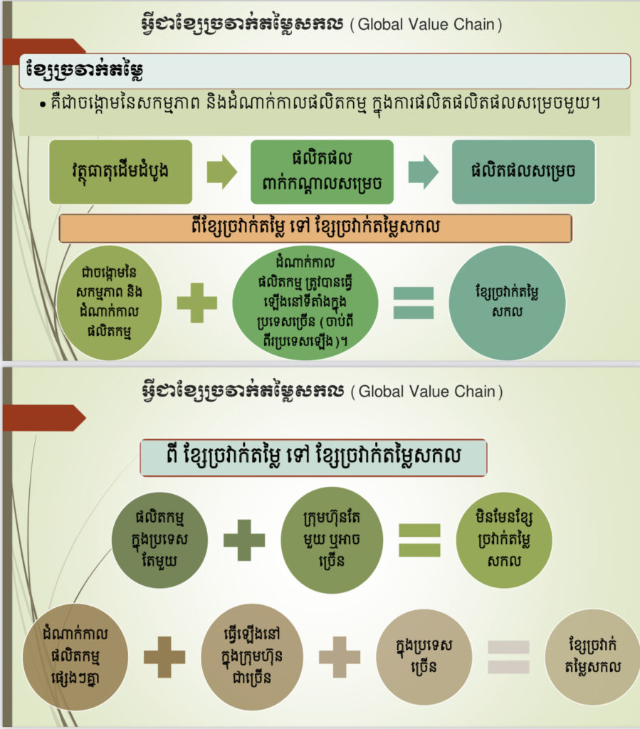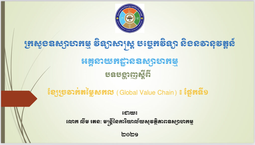 មន្ត្រីការិយាល័យជំនាញ នៃមន្ទីរឧស្សាហកម្ម វិទ្យាសាស្រ្ត បច្ចេកវិទ្យា និងនវានុវត្តន៍ខេត្តកោះកុង ចូលរួមកម្មវិធីធ្វើបទបង្ហាញស្តីពី ខ្សែច្រវ៉ាក់តម្លៃសកល (Global Value Chain)