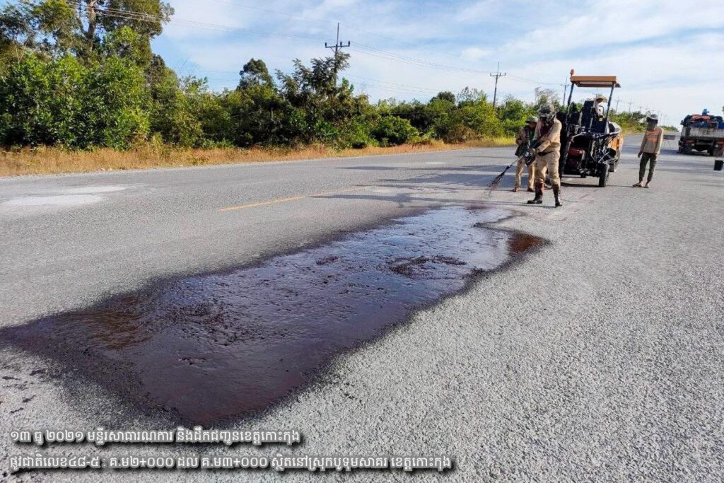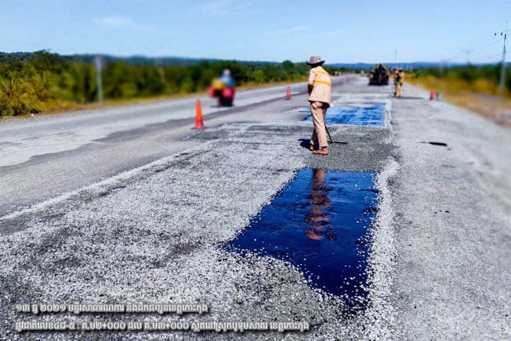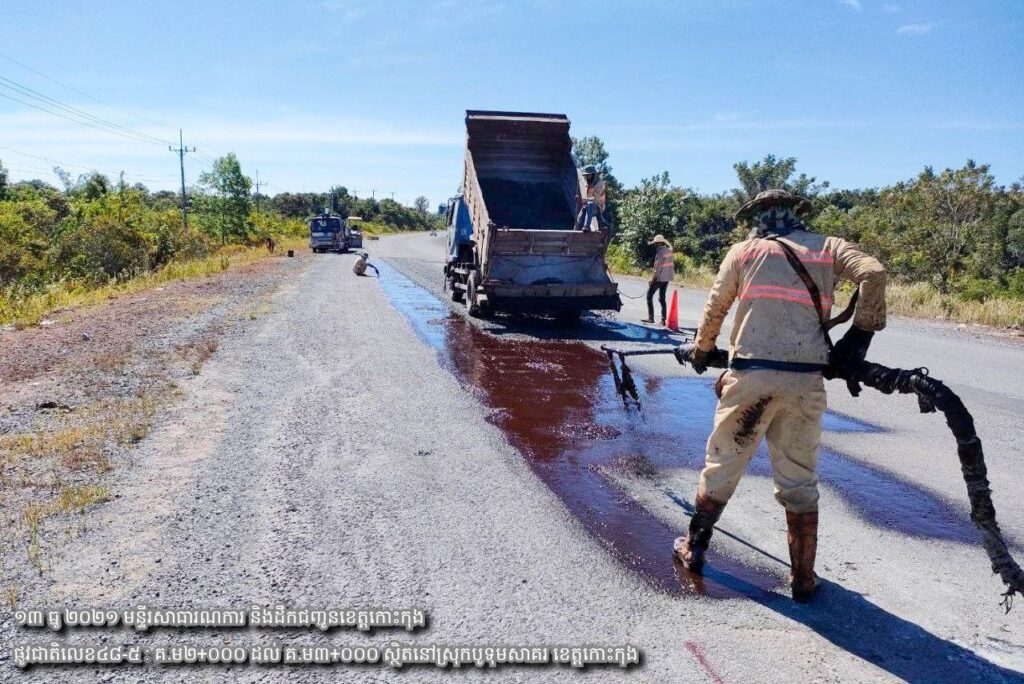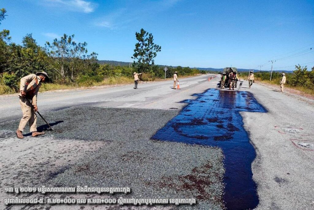 ១/ បន្តការងារថែទាំជាប្រចាំលើផ្លូវជាតិលេខ៤៨-៥ សកម្មភាពជួសជុលសំបុកមាន់ ដោយប្រើល្បាយថ្មម៉ិចលាយជាមួយស៊ីម៉ង់ត៍និងកៅស៊ូCRS2 ចន្លោះ គ.ម២+០០០ ដល់ គ.ម៣+០០០។