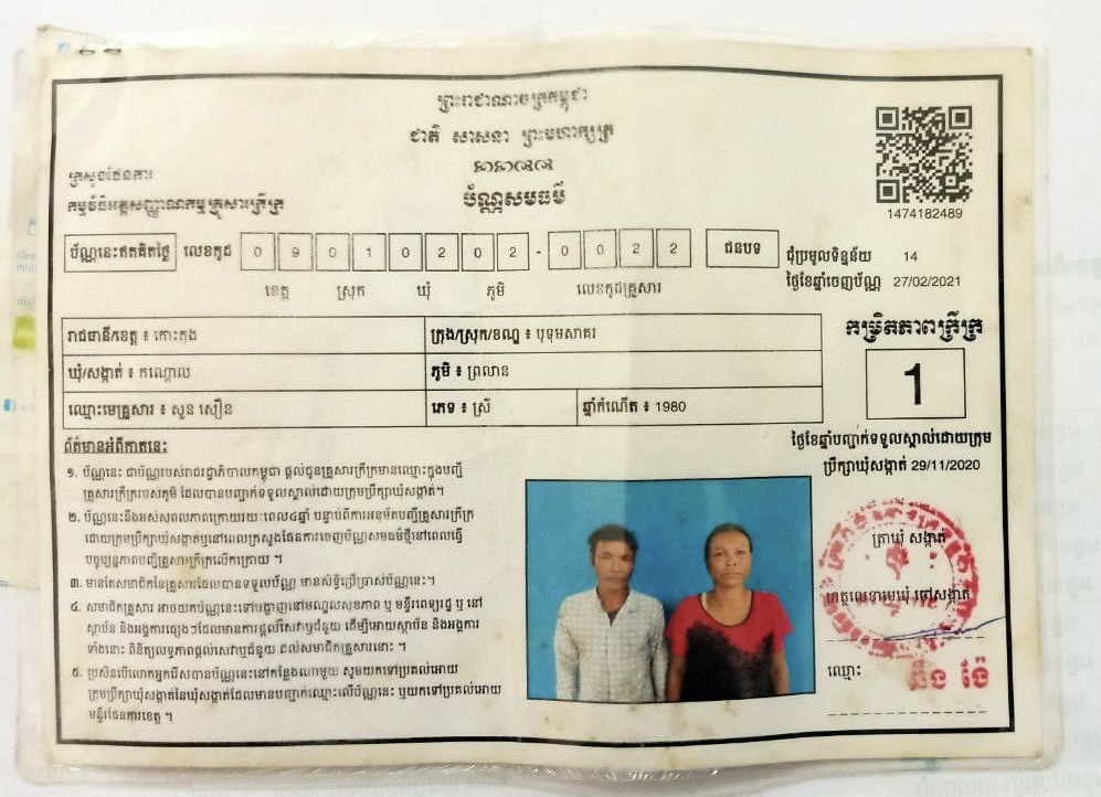 ឈ្មោះ សួន សឿន អាយុ៤០ឆ្នាំ មានទីលំនៅ ភូមិប្រលាន ឃុំកណ្តោល ស្រុកបូទុមសាគរខេត្តកោះកុង ដើម្បីយកទៅប្រើប្រាស់តាមការណែនាំរបស់មណ្ឌលសុខភាព។