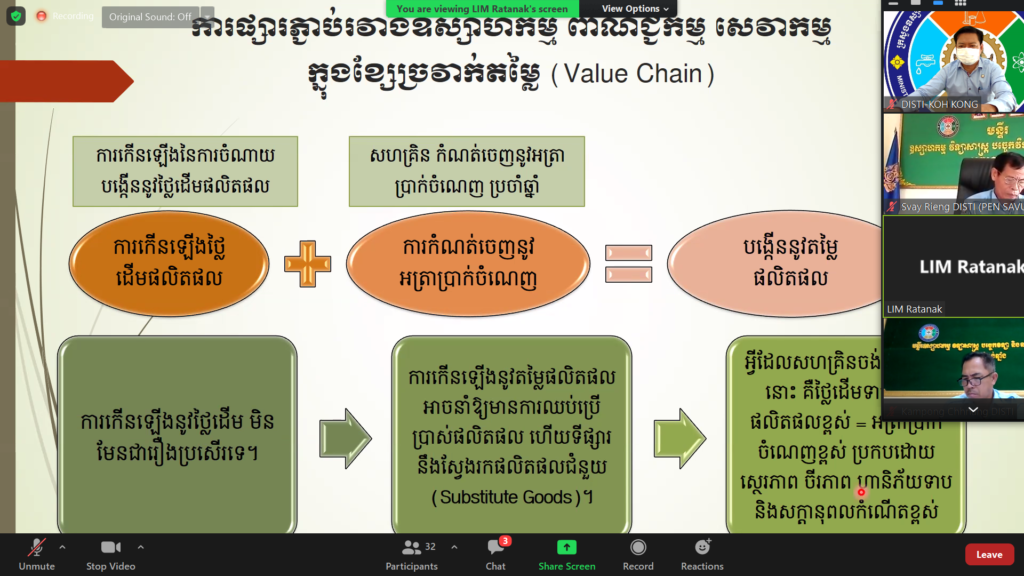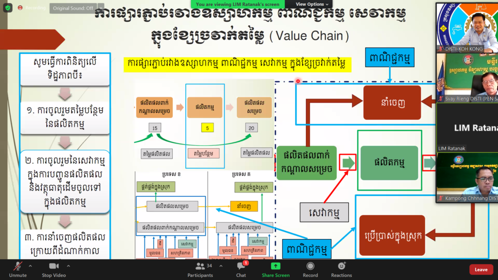 ថ្នាក់ដឹកនាំ និងមន្ត្រីជំនាញមន្ទីរឧស្សាហកម្ម វិទ្យាសាស្រ្ត បច្ចេកវិទ្យា និងនវានុវត្តន៍ខេត្តកោះកុង បានចូលរួមវគ្គបណ្តុះបណ្តាលស្តីពី «ខ្សែច្រវាក់តម្លៃសកល(Global Value Chain)» (វគ្គទីពីរ)????រៀបចំដោយ: អគ្គនាយកដ្ឋានឧស្សាហកម្ម នៃក្រសួង MISTI