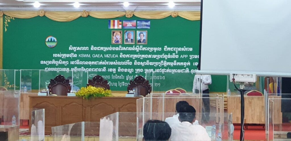 សិក្ខាសាលានេះរៀបចំឡើងក្នុងគោលបំណង លើកកម្ពស់ការស្វែងយល់នូវបទដ្ឋានបច្ចេកទេសក្នុងការប្រតិបត្តិការទីលាន ព្រមទាំងការគ្រប់គ្រង ការប្រមូល និងការដឹកជញ្ជូន ការទុកដាក់សំរាម សំណល់រឹង និងការធ្វើប្រព្រឹត្តកម្មទឹកកង្វក់ ដោយមានការធ្វើបទបង្ហាញពីក្រុមហ៊ុនប្រមូលសំរាមនៅក្រុងព្រះសីហានុ (KSWM) ក្រុមហ៊ុនប្រមូលសំរាមនៅរាជធានីភ្នំពេញ (GAEA) ក្រុមហ៊ុនប្រមូលសំរាមនៅរាជធានីភ្នំពេញ (MIZUDA) និងក្រុមហ៊ុនព័ត៌មានវិទ្យា (LUMA) ជូនមន្ទីរបរិស្ថានរាជធានី ខេត្ត និងបណ្តាខណ្ឌ ក្រុង ស្រុកនៃរាជធានីខេត្តទូទាំងព្រះរាជាណាចក្រកម្ពុជា។