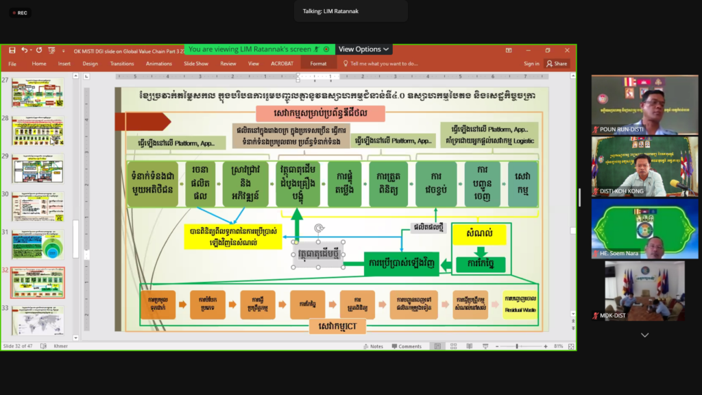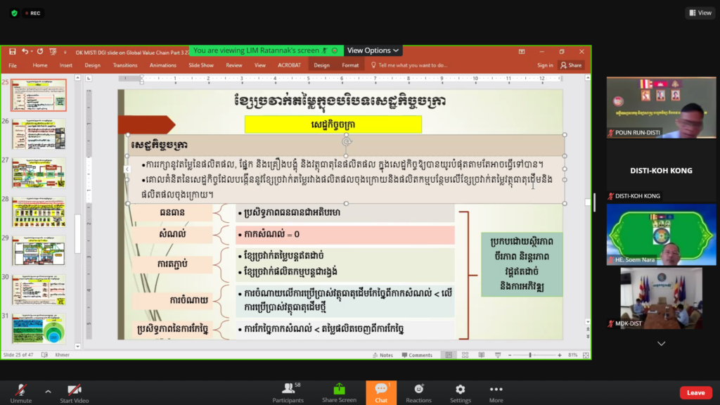 ថ្នាក់ដឹកនាំ និងមន្ត្រីជំនាញមន្ទីរឧស្សាហកម្ម វិទ្យាសាស្រ្ត បច្ចេកវិទ្យា និងនវានុវត្តន៍ខេត្តកោះកុង បានចូលរួមវគ្គបណ្តុះបណ្តាលស្តីពី «ខ្សែច្រវាក់តម្លៃសកល(Global Value Chain)» (វគ្គទីបី)????រៀបចំដោយ: អគ្គនាយកដ្ឋានឧស្សាហកម្ម នៃក្រសួង MISTI