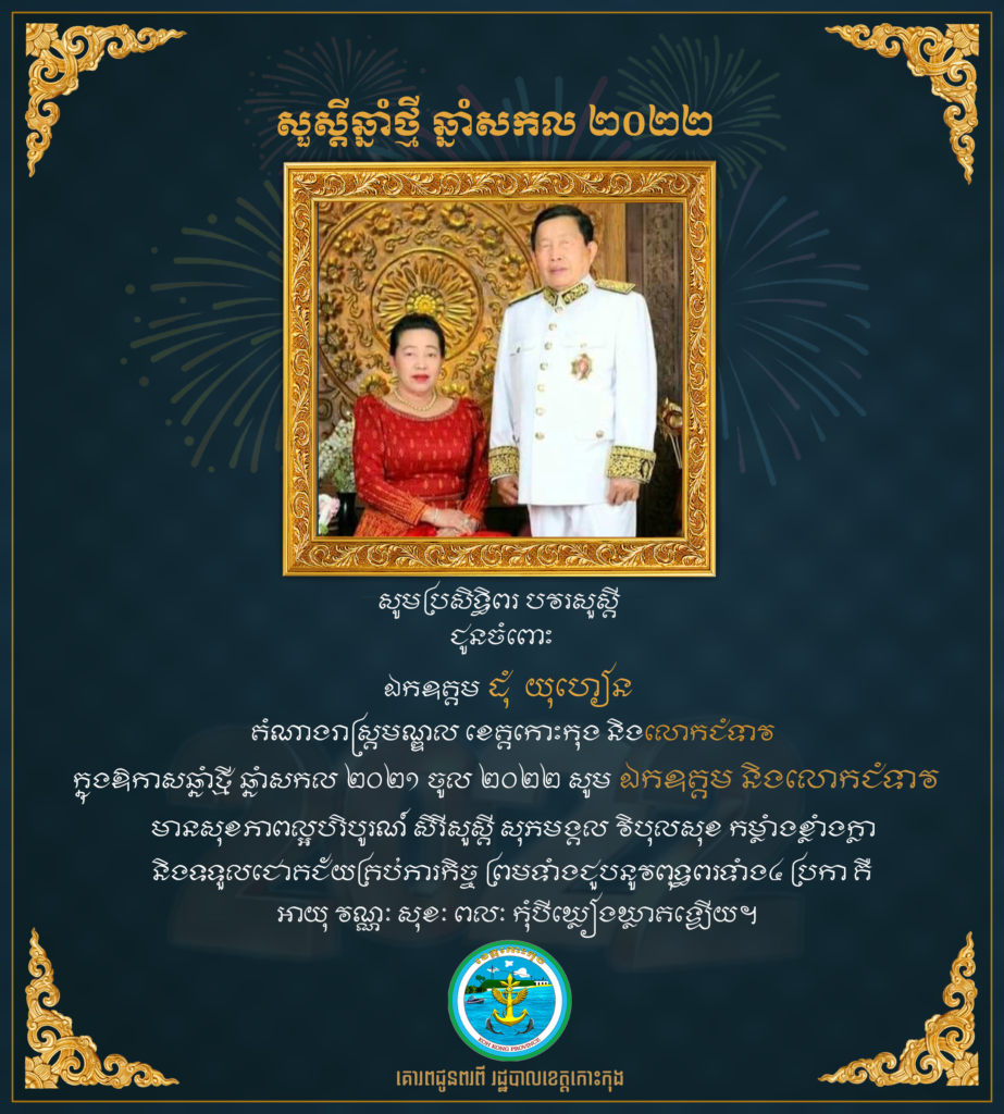 ក្រុមការងារមន្ត្រីព័ត៌មានវិទ្យា សាលាខេត្តកោះកុង សូមគោរពជូនពរ ឯកឧត្តម ដុំ យុហៀន តំណាងរាស្ត្រមណ្ឌលខេត្តកោះកុង និងលោកជំទាវ ក្នុងឱកាសចូលឆ្នាំថ្មី ឆ្នាំសកល ២០២១ ចូល ២០២២