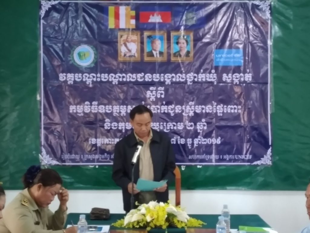 លោក ជា សូវី អភិបាល នៃគណៈអភិបាលស្រុកកោះកុង បានអញ្ជើញចូលរួមបើកវគ្គបណ្តុះបណ្តាល ស្តីពីសៀវភៅប្រតិបត្តិគោល និងប្រព័ន្ធបច្ចេកវិទ្យាគ្រប់គ្រងព័ត៌មាន សម្រាប់កម្មវិធីឧបត្ថម្ភសាច់ប្រាក់ ជូនស្រ្តីមានផ្ទៃពោះ និងកុមារអាយុក្រោម២ឆ្នាំ ដែលប្រព្រឹត្តទៅនៅសាលប្រជុំសាលាស្រុកកោះកុង សមាសភាពចូលរួមមាន ក្រុមមេឃុំ សមាជិកក្រុមប្រឹក្សាឃុំ ស្ត្រីទទួលបន្ទុកកិច្ចការនារីឃុំ និងមន្រ្តីប៉ុស្តិ៍សុខភាព សរុប ២៣ នាក់ ស្រី ០៩ នាក់។