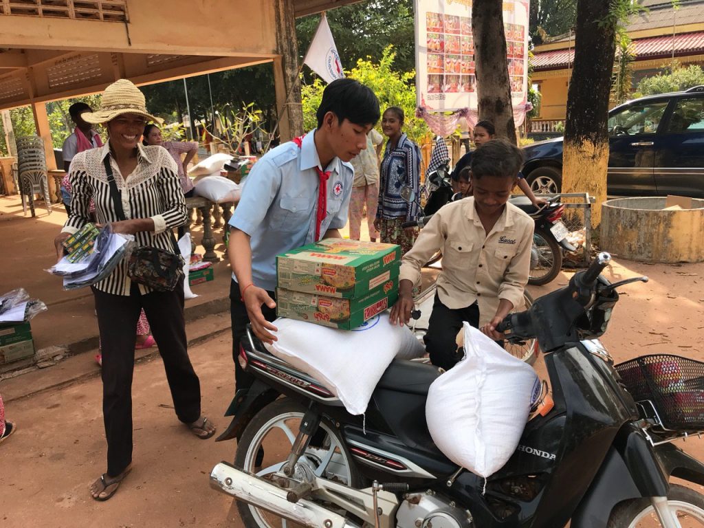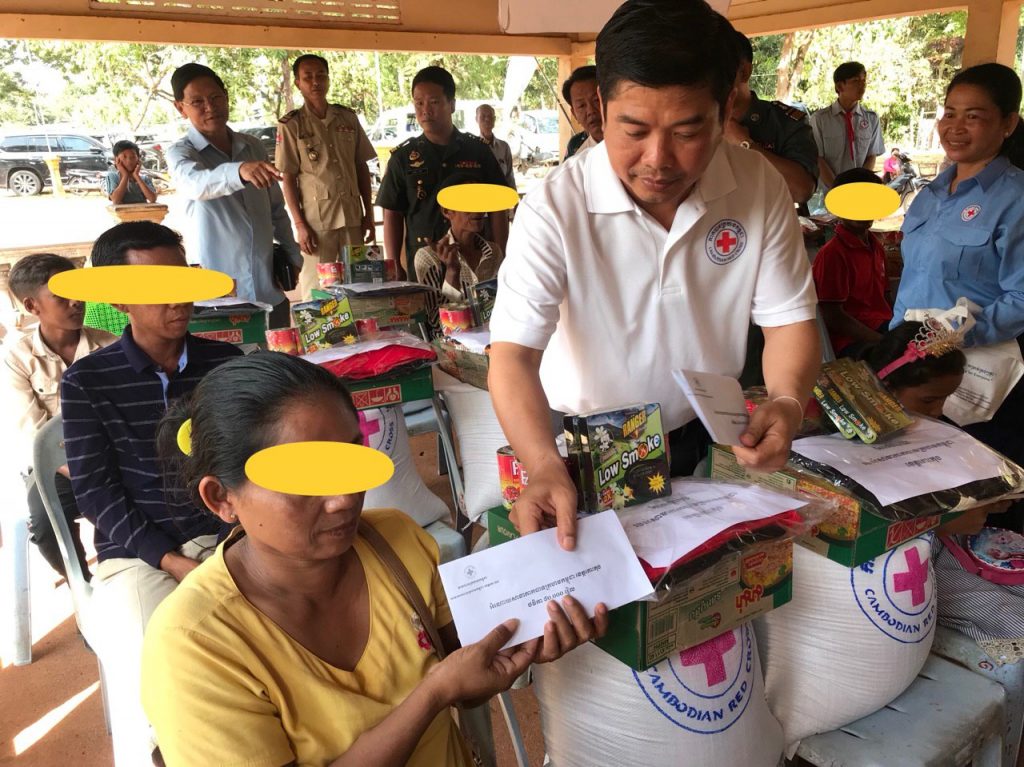សម្ភារដែលសាខាបានឧបត្ថម្ភ ក្នុងម្នាក់ទទួលបាន ៖ អង្ករ ២៥គក្រ មីម៉ាម៉ា១កេស ត្រីខកំប៉ុង១ឡូ អាវយឺត២អាវ ធូបមូស Ranger ២ប្រអប់ ព្រមទាំងថវិកា ៨ម៉ឺនរៀលដូចៗគ្នា។
