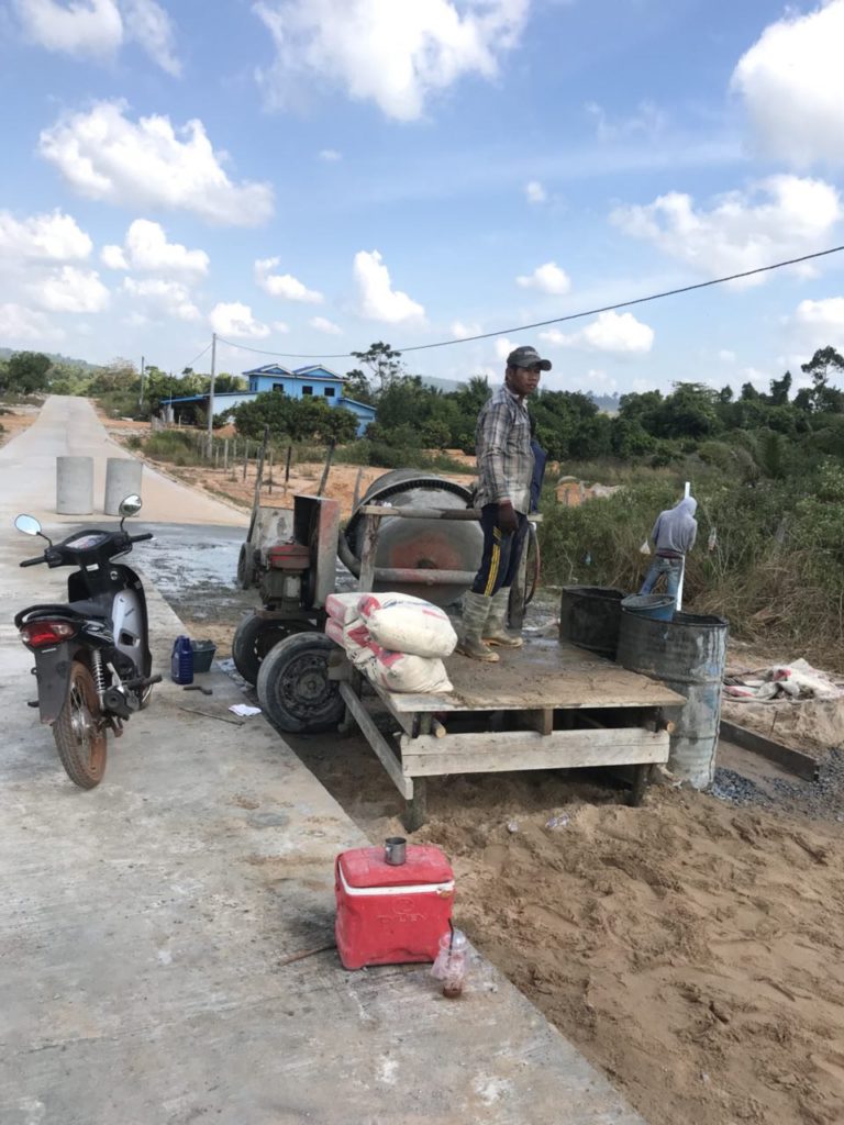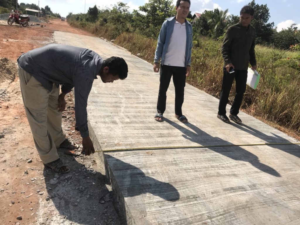លោក ហេង វិបុល ប្រធានអង្គភាពលទ្ធកម្មស្រុក និងលោក លឿន សុខណាន អនុការិយាល័យផែនការគាំទ្រឃុំ បានទៅពិនិត្យទីតាំងសាងសង់ផ្លូវបេតុងអាមេ ១ខ្សែ មានប្រវែង ១៧០ម ទទឹង ៦ម និងកម្រាស់ ០,១៥ម ស្ថិតនៅភូមិព្រែកស្មាច់ ឃុំកោះស្តេច ស្រុកគិរីសាគរ ខេត្តកោះកុង ដែលជាកញ្ចប់ថវិកាអភិវឌ្ឍន៍២០១៩ របស់រដ្ឋបាលស្រុកគិរីសាគរ ជាលទ្ធផលការស្ថាបនាបេតុង បានចំនួន៤០ %។