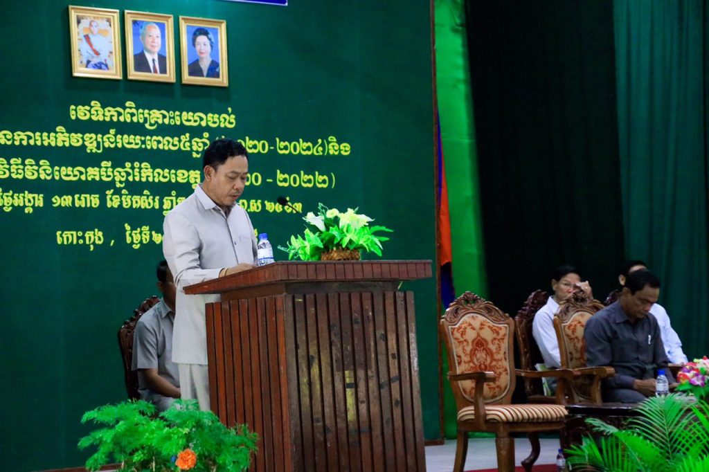 ឯកឧត្តម កាយ សំរួម ប្រធានក្រុមប្រឹក្សាខេត្ត និងលោក ផៃធូន ផ្លាមកេសន អភិបាលរង ជាតំណាងដ៏ខ្ពង់ខ្ពស់លោកជំទាវ មិថុនា ភូថង អភិបាល នៃគណៈអភិបាលខេត្តកោះកុង បានអញ្ជើញជាអធិបតី ក្នុងវេទិកាពិគ្រោះយោបល់ ស្តីពីផែនការអភិវឌ្ឍន៍រយៈពេល ៥ឆ្នាំ និងកម្មវិធីវិនិយោគ ៣ឆ្នាំរំកិល របស់រដ្ឋបាលខេត្តកោះកុង។