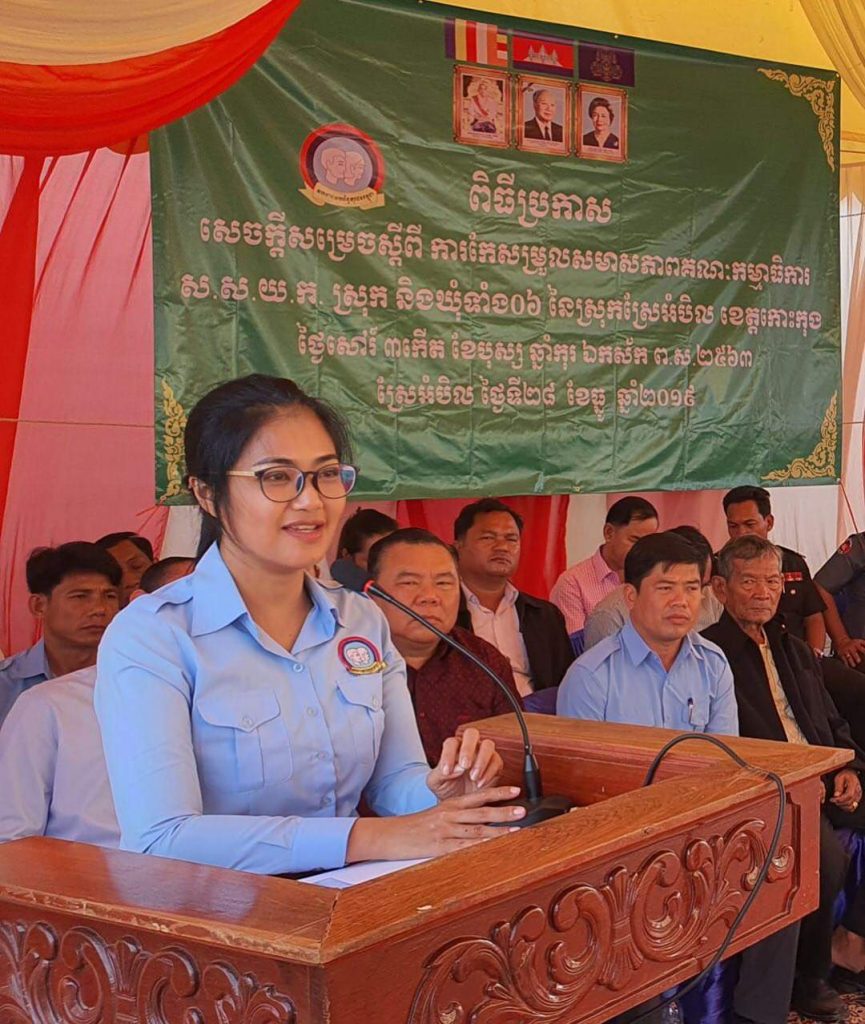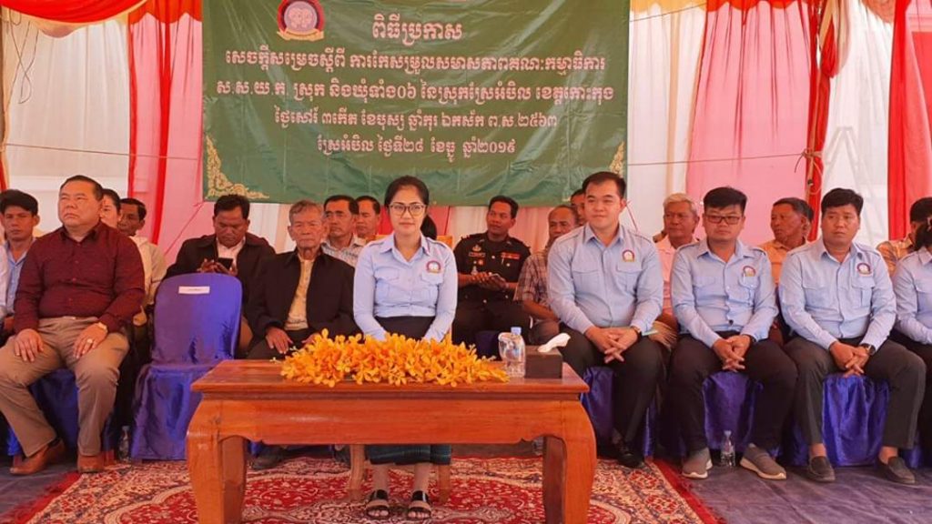 លោកជំទាវ មិថុនា ភូថង អភិបាល នៃគណៈអភិបាលខេត្តកោះកុង សមាជិកគណៈអចិន្រៃ្តយ៍គណៈកម្មាធិការកណ្តាលសហភាពសហព័ន្ធយុវជនកម្ពុជា និងជាប្រធានសហភាពសហព័ន្ធយុវជនកម្ពុជា ខេត្តកោះកុង បានអញ្ជើញជាអធិបតី ក្នុងពិធីប្រកាសសេចក្តីសម្រេច ស្តីពីការកែរសម្រួលសមាសភាព គណៈកម្មាធិការសហភាពសហព័ន្ធយុវជនកម្ពុជា (ស.ស.យ.ក) ស្រុកស្រែអំបិល និងឃុំទាំង៦ នៃស្រុកស្រែអំបិល ខេត្តកោះកុង នៅស្រុកស្រែអំបិល