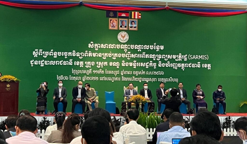 ថ្ងៃព្រហស្បតិ៍ ១១កើត ខែអស្សុជ ឆ្នាំខាល ចត្វាស័ក ពស២៥៦៦ ត្រូវនិងថ្ងៃទី០៦ ខែតុលា ឆ្នាំ២០២២ វេលាម៉ោង៨:០០នាទីព្រឹក លោក សូ សុខា ប្រធានការិយាល័យរដ្ឋបាល និងហិរញ្ញវត្ថុក្រុង និងលោក សាក់ រ៉ាវី ប្រធានការិយាល័យច្រកចេញចូលតែមួយក្រុងខេមរភូមិន្ទ បានចូលរួមសិក្ខាសាលាបណ្តុះបណ្តាលការប្រើប្រាស់ប្រព័ន្ធបច្ចេកវិទ្យាព័ត៌មានគ្រប់គ្រង ទិន្នន័យបញ្ជីសារពើភណ្ឌទ្រព្យសម្បត្តិរដ្ឋ(State Asset Register Management Information System SARMIS)ជូនរដ្ឋបាលរាជធានី ខេត្ត ក្រុង ស្រុក ខណ្ឌ និងមន្ទីរសេដ្ឋកិច្ច និងហិរញ្ញវត្ថុរាជធានី ខេត្ត។ ក្នុងគោលបំណងដើម្បីពង្រឹងការគ្រប់គ្រងទ្រព្យសម្បត្តិរដ្ឋឱ្យកាន់តែមានប្រសិទ្ធភាពខ្ពស់។