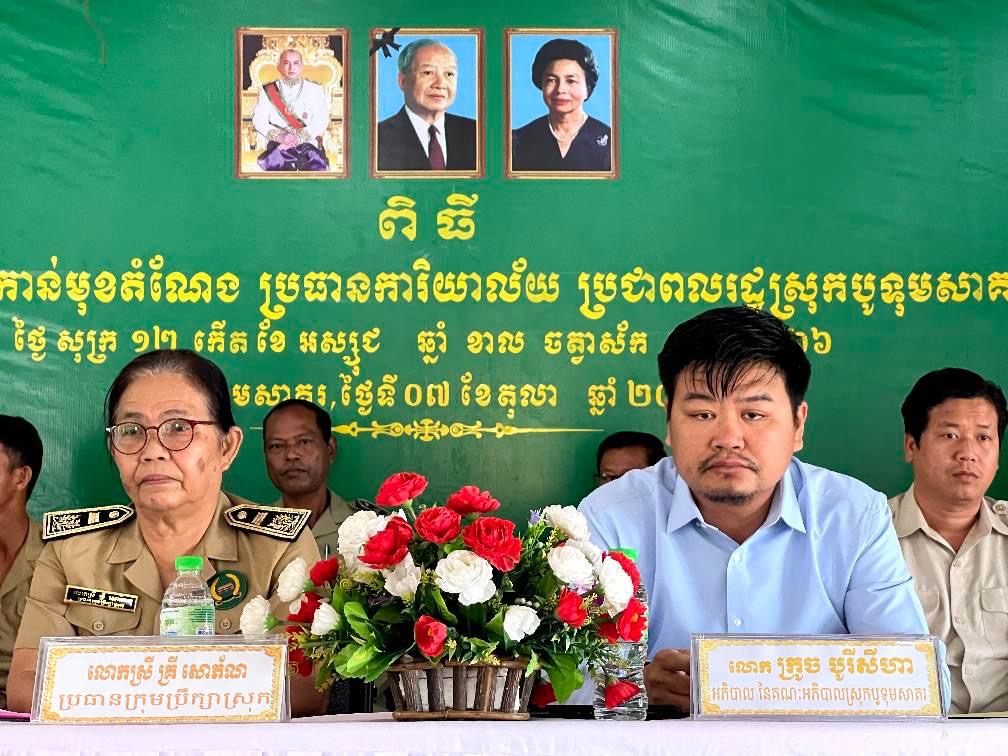 វេលាម៉ោង០៩:៣០នាទីព្រឹក រដ្ឋបាលស្រុកបូទុមសាគរ បានរៀបចំពិធីប្រកាសតែងតាំង ប្រធានការិយាល័យប្រជាពលរដ្ឋ នៃរដ្ឋបាលស្រុកបូទុមសាគរ ក្រោមគណៈអធិបតី លោកស្រី គ្រី សោភ័ណ ប្រធានក្រុមប្រឹក្សាស្រុក និងលោក ក្រូច បូរីសីហា អភិបាល នៃគណៈអភិបាលស្រុកបូទុមសាគរ