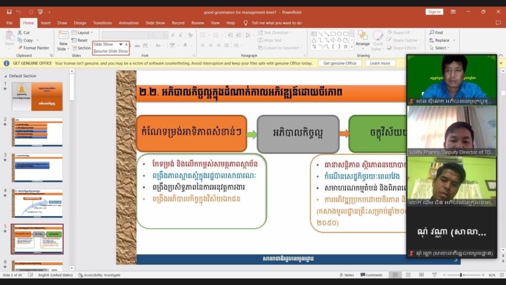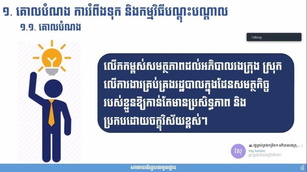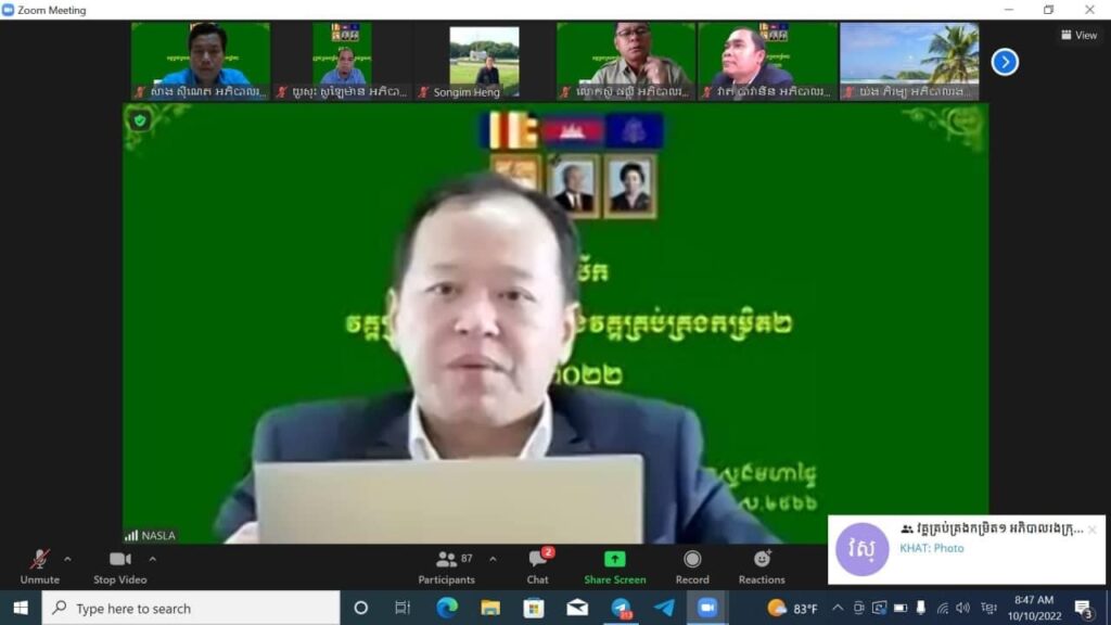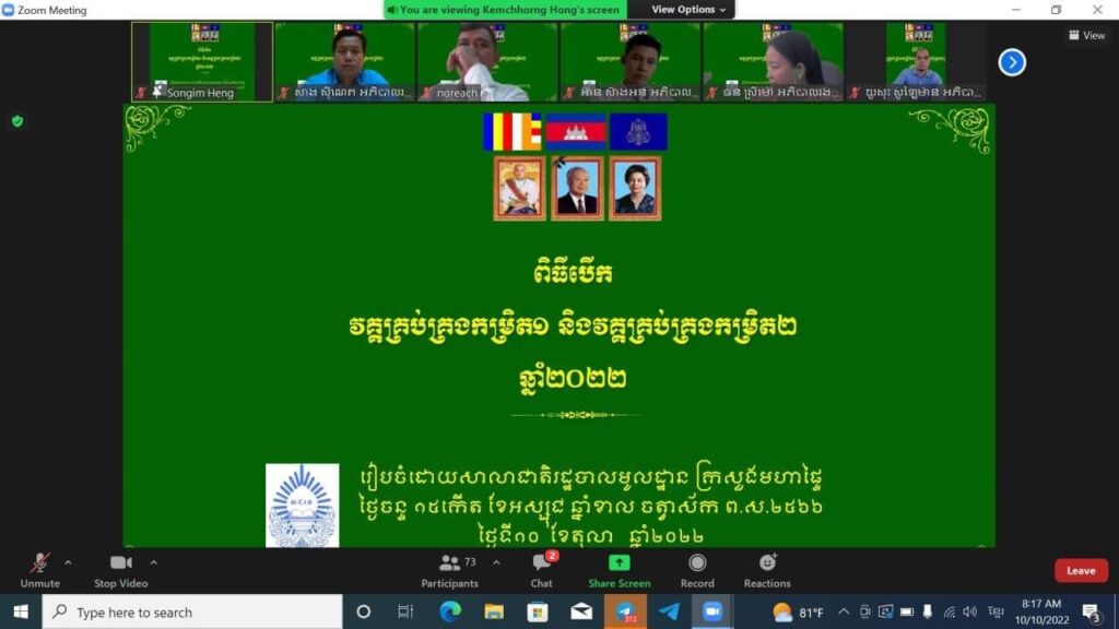 វេលាម៉ោង៨.៣០នាទីព្រឹក លោក សាង ស៊ីណេត អភិបាលរងស្រុកបូទុមសាគរ បានចូលរួមពិធីបើកវគ្គគ្រប់គ្រងកម្រិត១ និងវគ្គគ្រប់គ្រងកម្រិត២ ឆ្នាំ២០២២ ( ១០-២៨/តុលា/២០២២) រៀបចំដោយ សាលាជាតិរដ្ឋបាលមូលដ្ឋានក្រសួងមហាផ្ទៃ តាមរយៈប្រព័ន្ធហ្សូម( Zoom ) ក្រោមអធិបតីភាព ឯកឧត្តម សូ មុនីរក្សា នាយកសាលាជាតិរដ្ឋបាលមូលដ្ឋាន