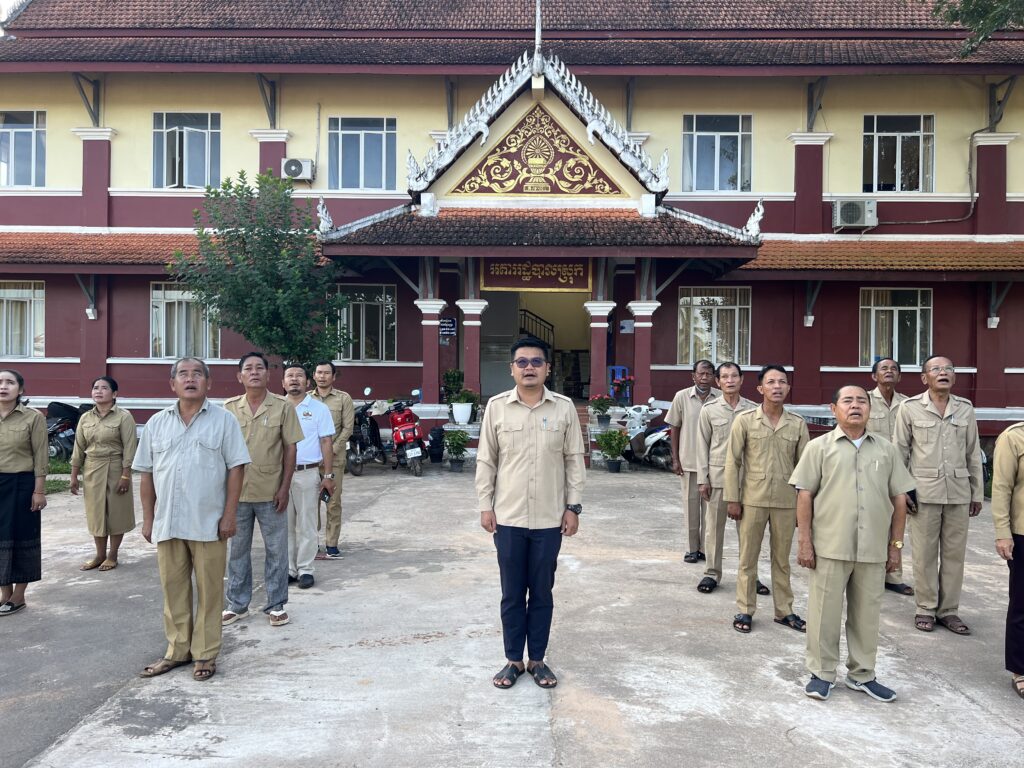 ព្រឹកថ្ងៃទី១៤ ខែវិច្ឆិកា ឆ្នាំ២០២២   ក្រុមប្រឹក្សាស្រុក គណៈអភិបាលស្រុក និងមន្ត្រីនៃរដ្ឋបាលស្រុកបូទុមសាគរ បានអនុវត្តគោរពទង់ជាតិ នៃព្រះរាជាណាចក្រកម្ពុជារៀងរាល់ព្រឹកថ្ងៃចន្ទនេះដើមសប្តាហ៍។