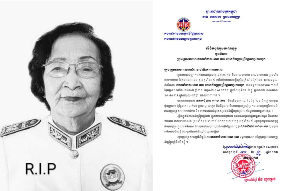 កងរាជអាវុធហត្ថខេត្តកោះកុងផ្ញើលិខិតចូលរួមមរណទុក្ខ ជូនចំពោះក្រុមគ្រួសារសពលោកជំទាវ អោម អេម សមាជិកក្រុមប្រឹក្សាខេត្តកោះកុង