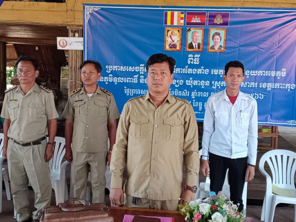 លោក សាង ស៊ីណេត អភិបាលរងស្រុកបូទុមសាគរ តំណាងអោយលោកអភិបាលស្រុក បានចូលរួមជាអធិបតី ក្នុងពិធីប្រកាសសេចក្តីសម្រេច ស្តីពីការតែងតាំងមេភូមិ និងជំនួយការមេភូមិទួលពោធិ៍ និងមេភូមិព្រែកខ្យង នៃឃុំតានូន ស្រុកបូទុមសាគរខេត្តកោះកុង ដែលមានការអញ្ជើញចូលរួម លោកមេឃុំ ក្រុមប្រឹក្សាឃុំ លោកមេភូមិ អនុភូមិ និងបងប្អូនប្រជាពលរដ្ឋសរុបចំនួន១២០នាក់។