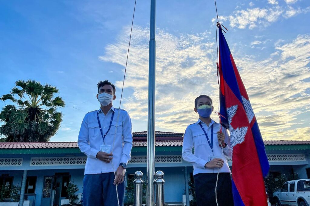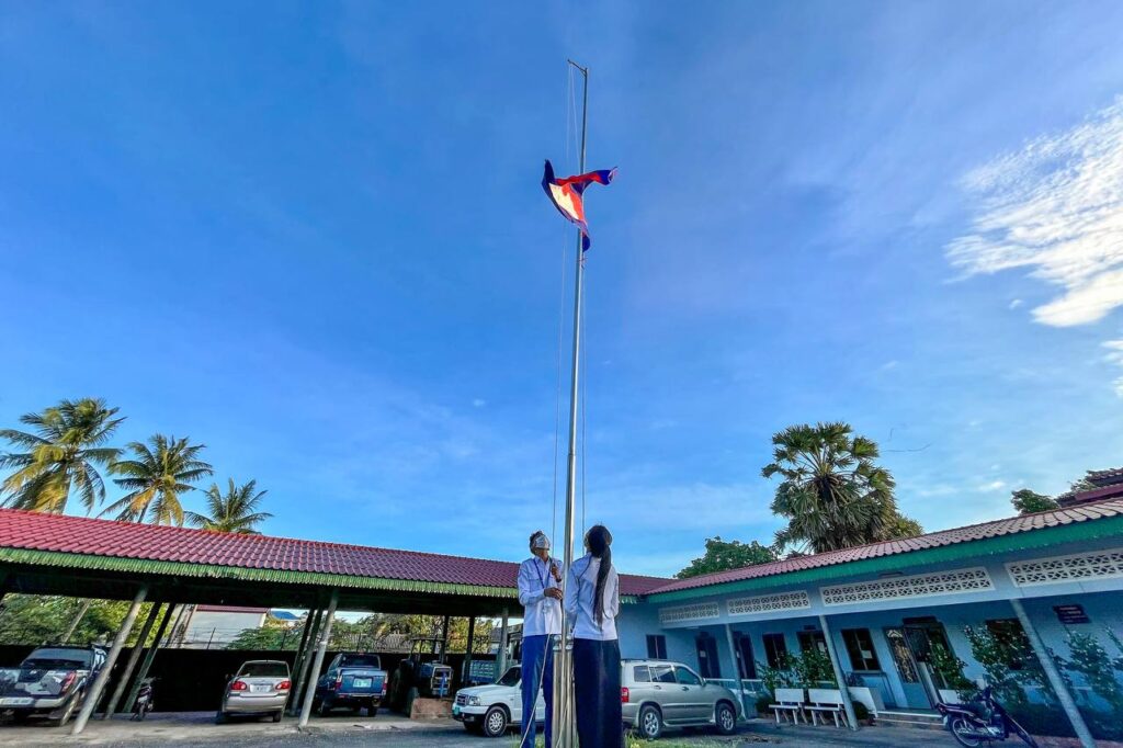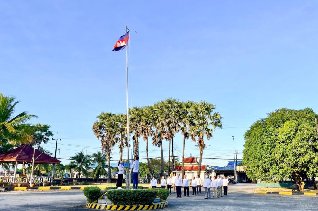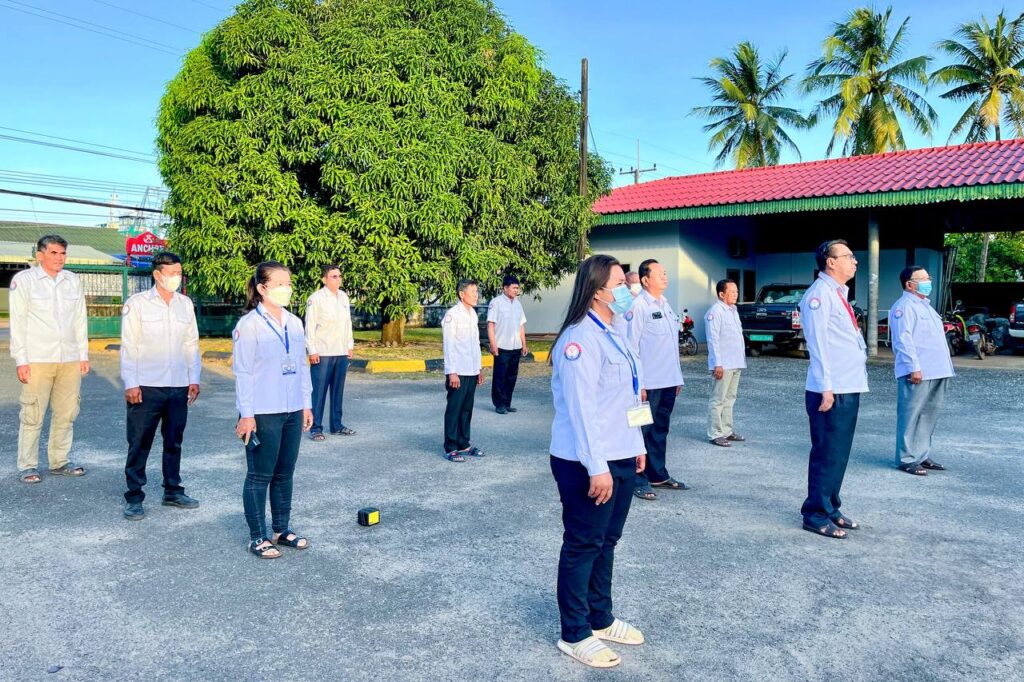 មន្ត្រីរាជការមន្ទីរសាធារណការ និងដឹកជញ្ជូនខេត្តកោះកុង គោរព​ទង់ជាតិ និងភ្លេងជាតិ នៃព្រះរាជាណាចក្រកម្ពុជា