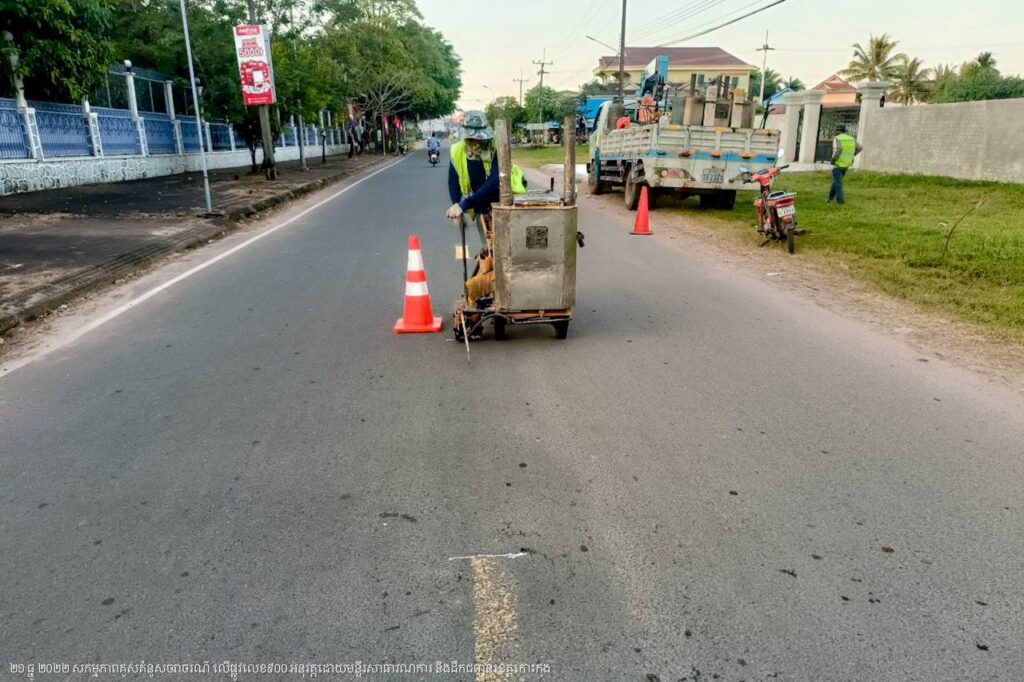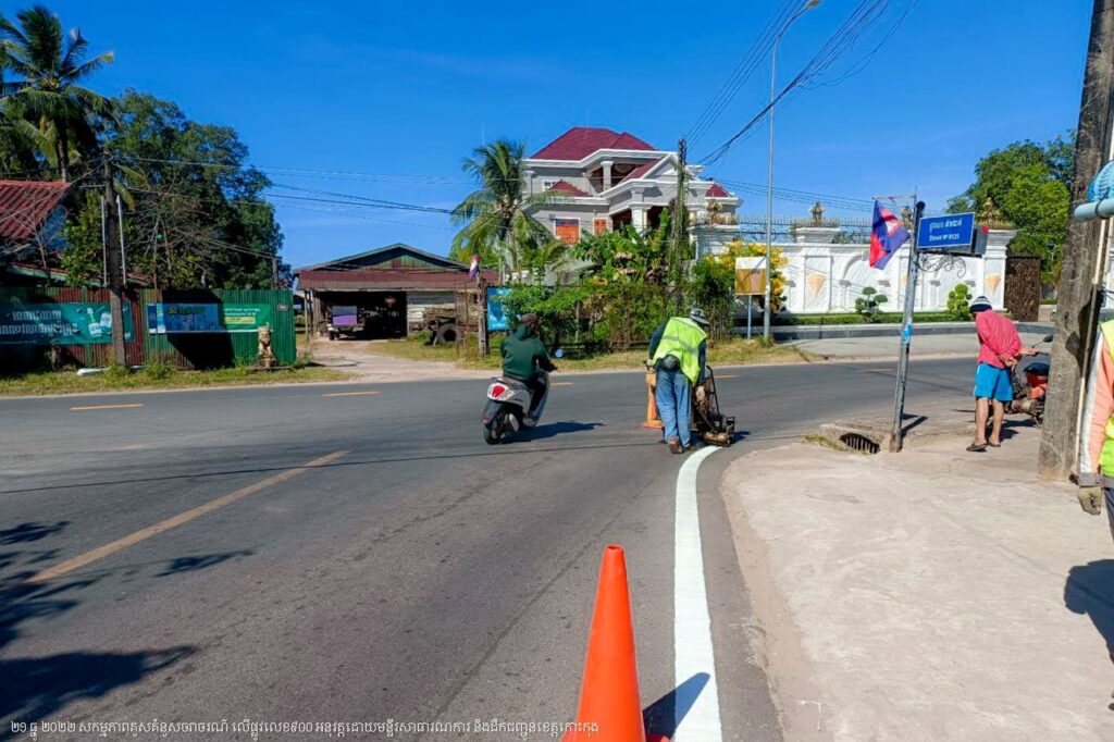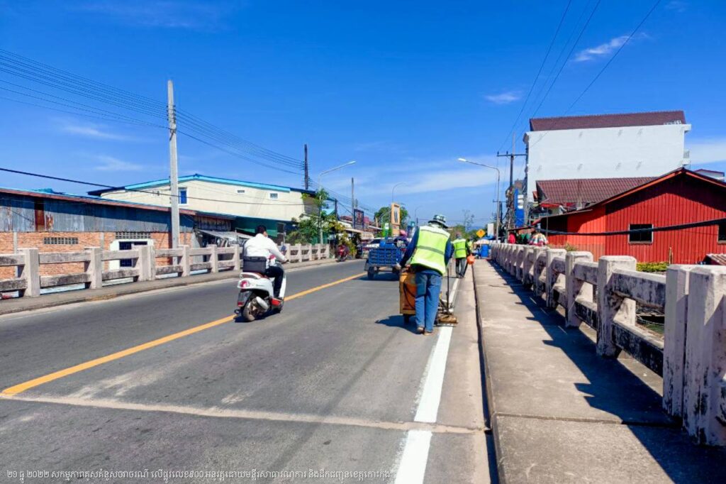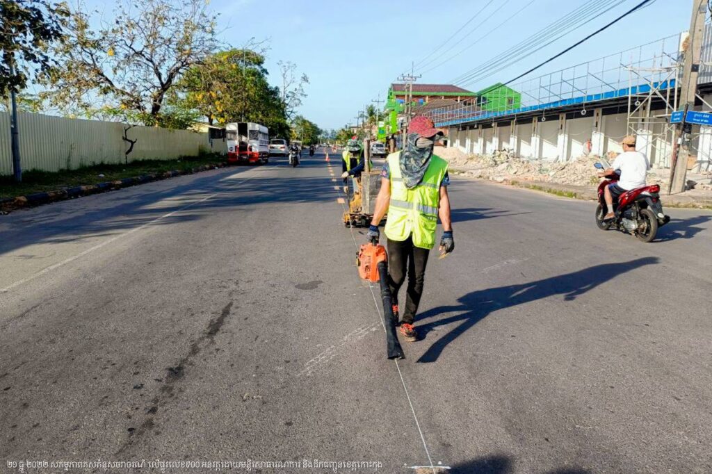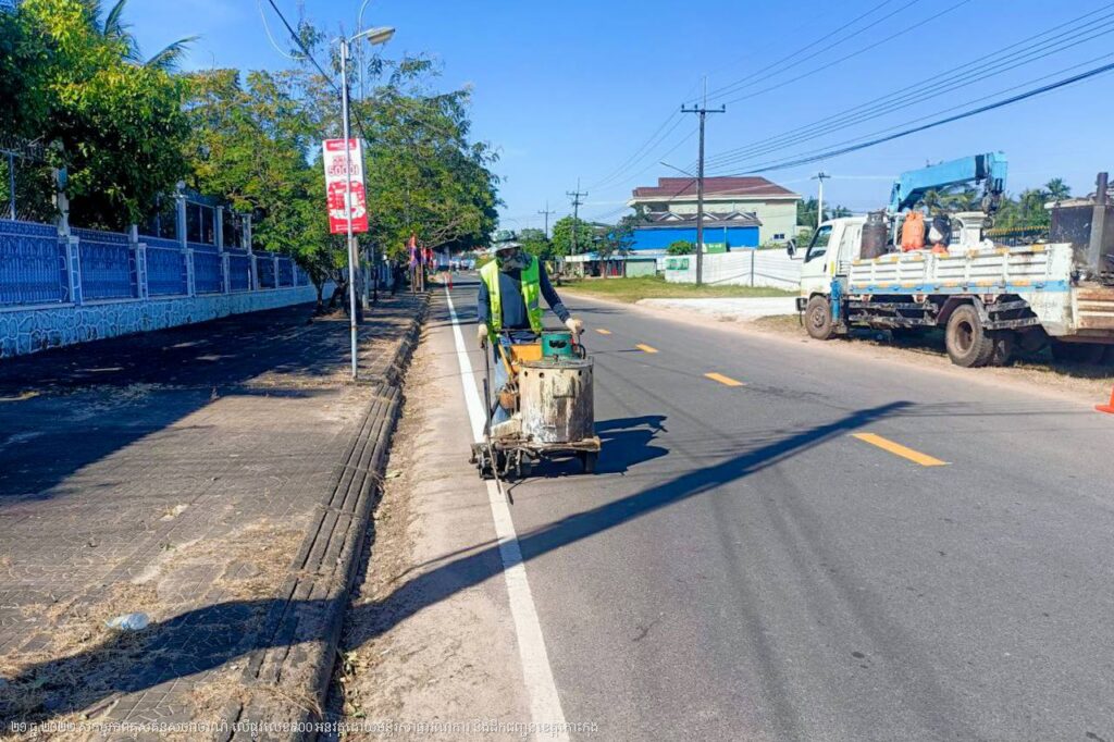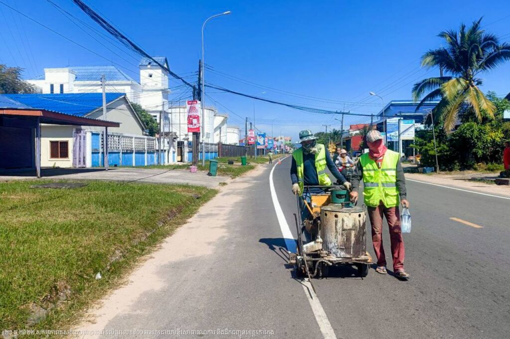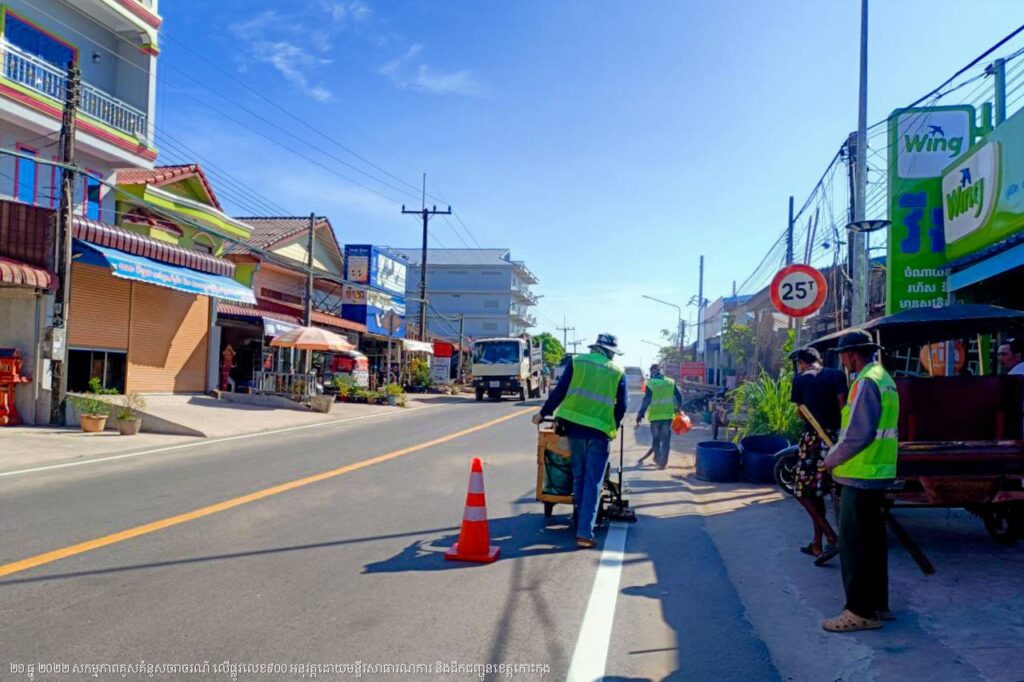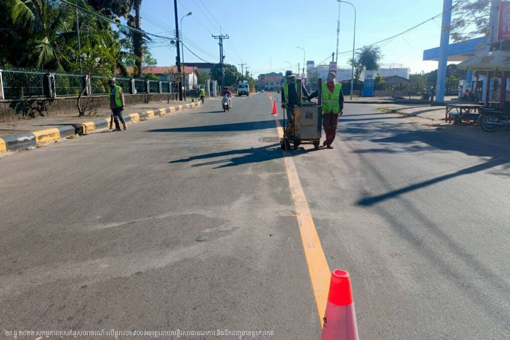 មន្ទីរសាធារណការ និងដឹកជញ្ជូនខេត្តកោះកុង បន្តការងារគូសគំនូសសញ្ញាចរាចរណ៍លើផ្លូវលេខ៩០០ ក្នុងក្រុងខេមរភូមិន្ទ
