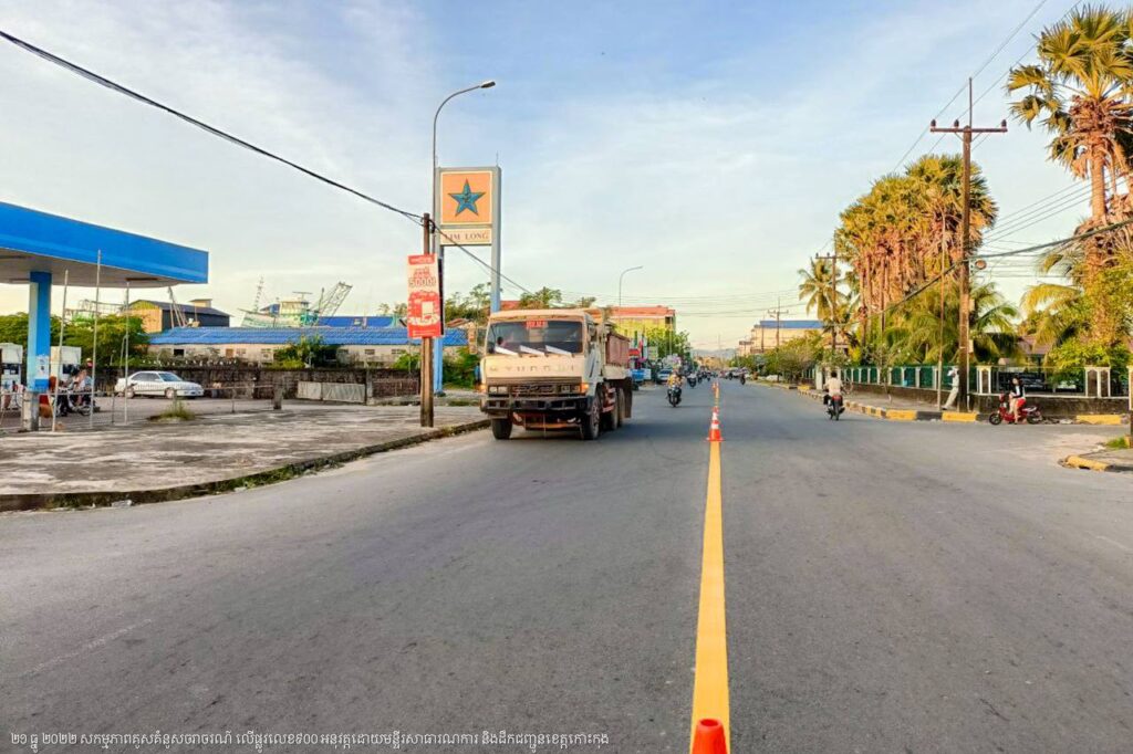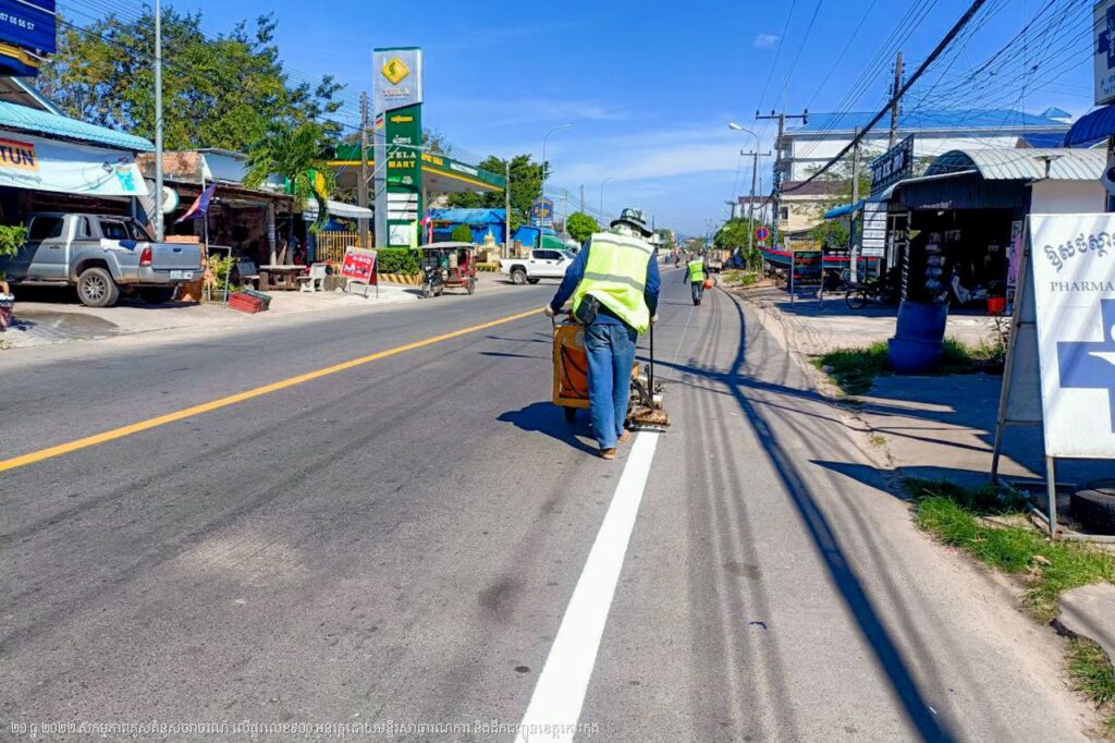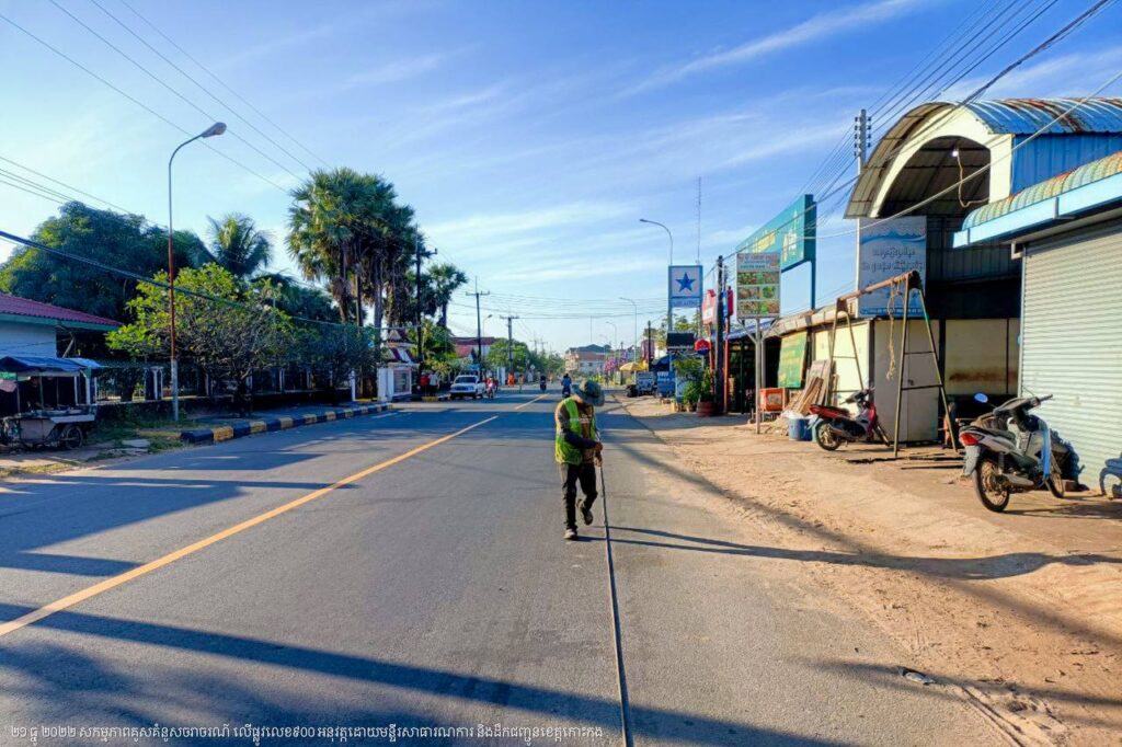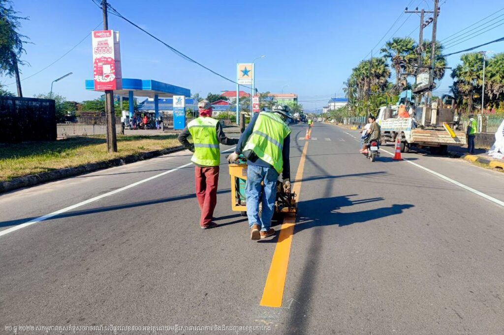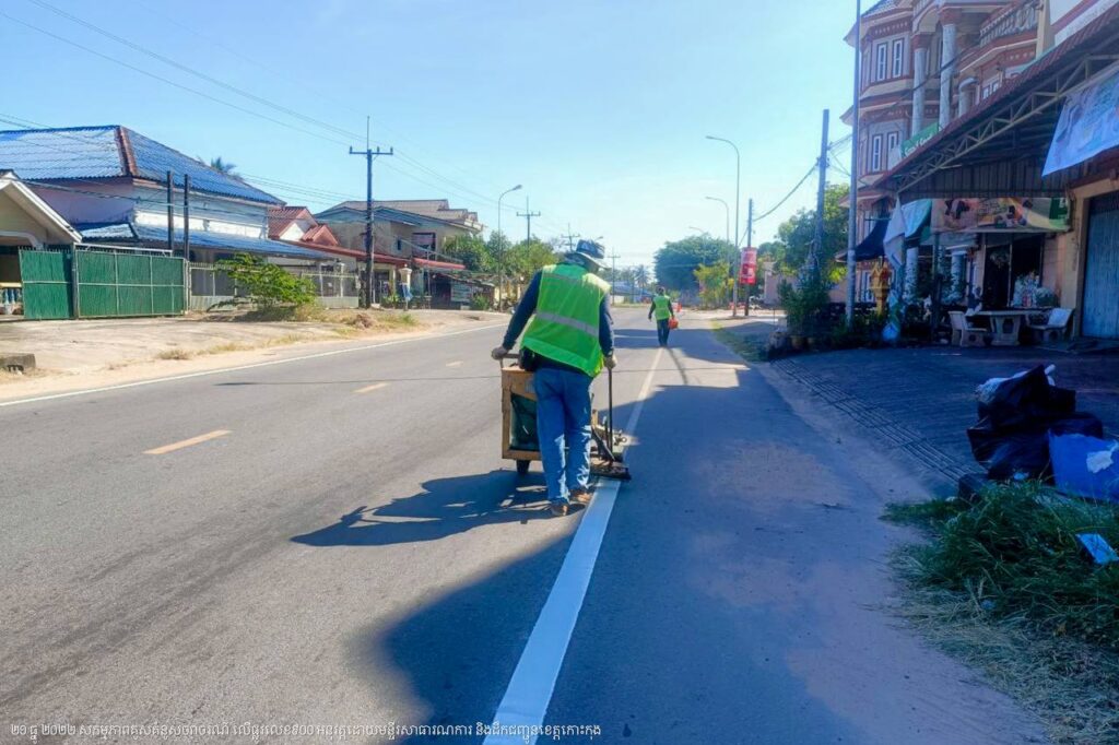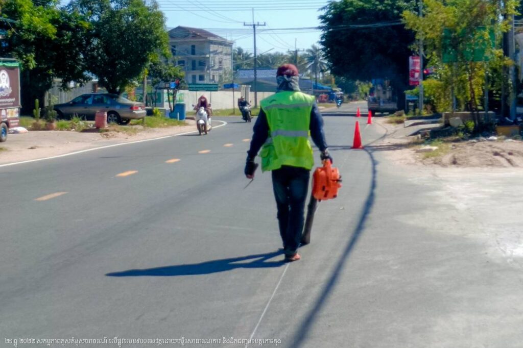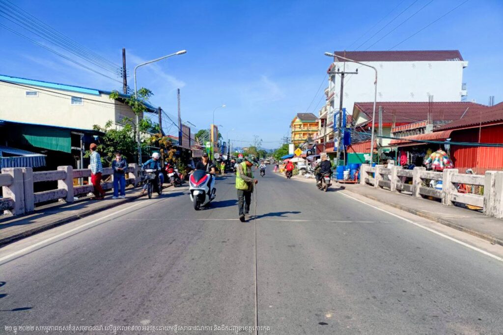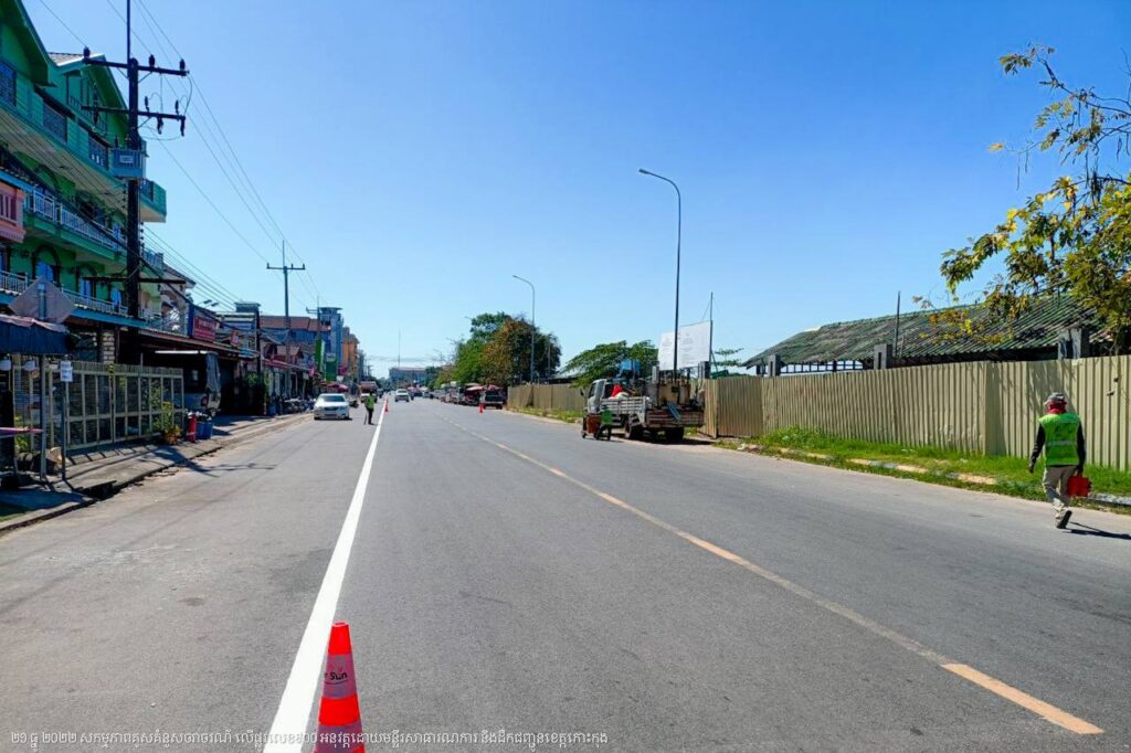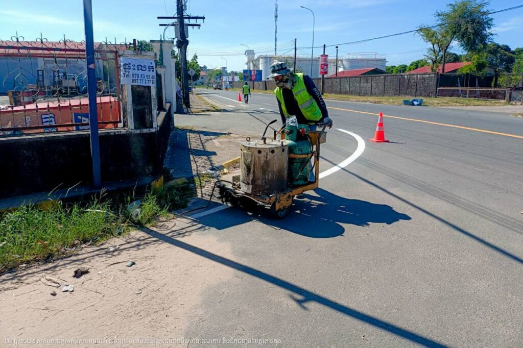 មន្ទីរសាធារណការ និងដឹកជញ្ជូនខេត្តកោះកុង បន្តការងារគូសគំនូសសញ្ញាចរាចរណ៍លើផ្លូវលេខ៩០០ ក្នុងក្រុងខេមរភូមិន្ទ