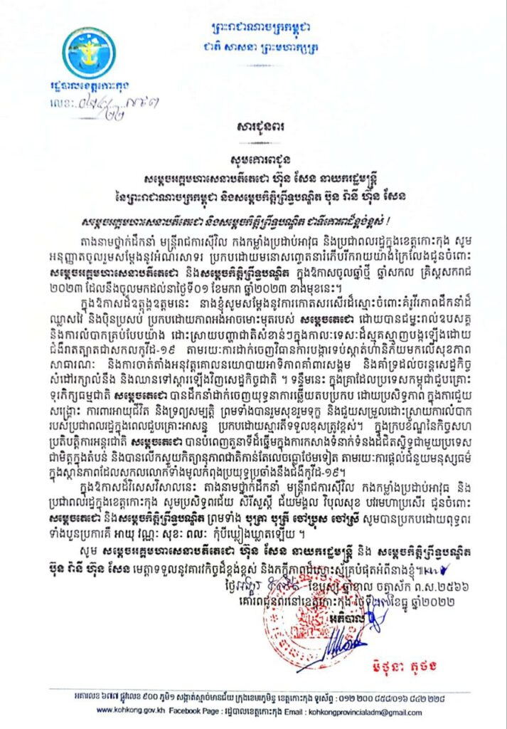 សូមគោរពជូនពរពី រដ្ឋបាលខេត្តកោះកុង