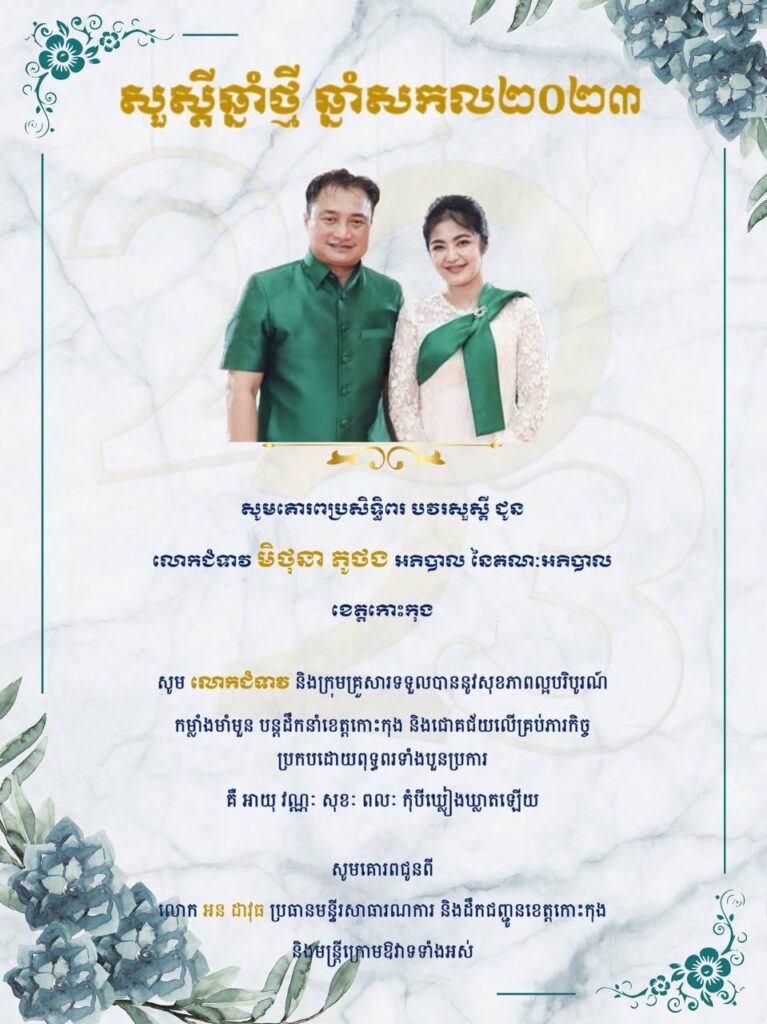 សារលិខិតជូនពរ គោរពជូន លោកជំទាវ មិថុនា ភូថង អភិបាល នៃគណៈអភិបាលខេត្តកោះកុង ក្នុងឱកាសចូលឆ្នាំថ្មី ឆ្នាំសកល ២០២៣