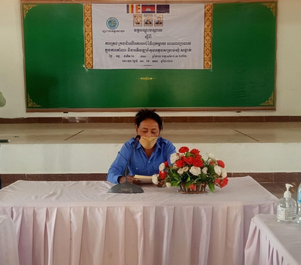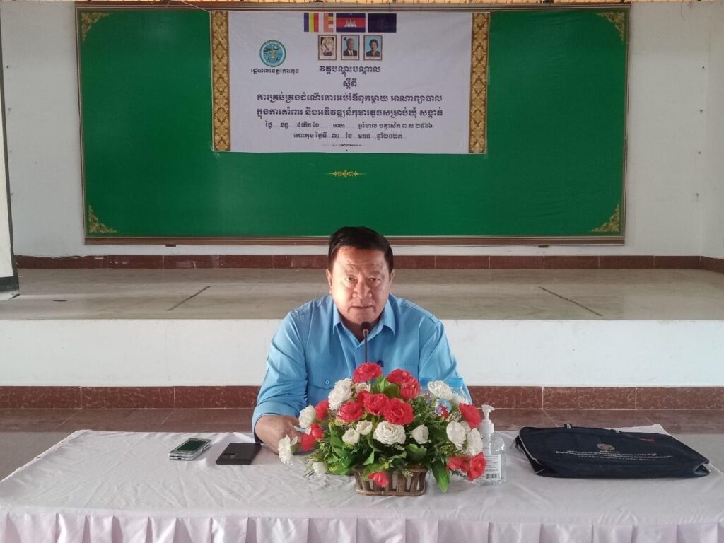លោកស្រី អ៉ិន សោភ័ណ្ឌ អភិបាលស្ដីទី លោកស្រី នូ សេងគា ប្រធាន គ.ក.ស.ក ការិយាល័យសង្គមកិច្ច និងសុខុមាលភាពសង្គម ការិយាល័យផែនការ និងគាំទ្រឃុំសង្កាត់ ការិយាល័យអប់រំយុវជន និងកីឡាស្រុក ក្រុមប្រឹក្សាឃុំ និង ជំនួយការឃុំ នាយកសាលាបឋមសិក្សាទាំង៤ឃុំ នៃស្រុកបូទុមសាគរ បានចូលរួមវគ្គបណ្ដុះបណ្ដាល ស្ដីពីការគ្រប់គ្រងដំណើរការអប់រំឪពុកម្ដាយ អាណាព្យាបាលក្នុងការគាំពារ និងអភិវឌ្ឍន៍កុមារតូចសម្រាប់ឃុំ សង្កាត់ ក្រោមអធិបតីភាព លោក ស្រេង ហុង អភិបាលរង នៃគណ:អភិបាលខេត្តកោះកុង