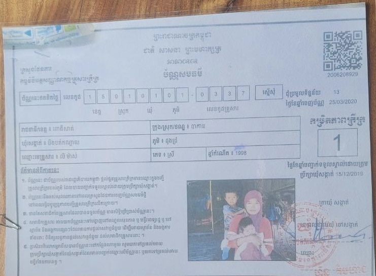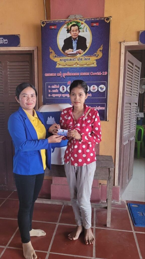 លោកស្រី ង៉ែ ដា ជំទប់ទី១ ឃុំកណ្តោលបានផ្តល់កាតវីងជូនស្ត្រីមានផ្ទៃពោះឈ្មោះ លិ ម៉ាស អាយុ២៤ឆ្នាំ មានទីលំនៅបច្ចុប្បន្ននៅភូមិសុវណ្ណាបៃតង ឃុំកណ្តោល ស្រុកបូទុមសាគរ ខេត្តកោះកុង ដើម្បីយកទៅប្រើប្រាស់តាមការណែនាំរបស់មណ្ឌលសុខភាព។