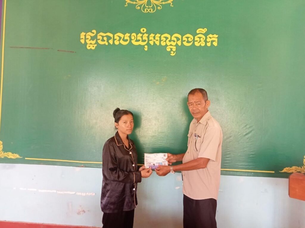 លោក ឃៀង យិង មេឃុំអណ្តូងទឹក បានអញ្ជើញផ្តល់កាតវីងជូនដល់ស្រ្តីមានផ្ទៃពោះឈ្មោះ ស៊ុន ឈៀងលីហ្សា អាយុ១៨ឆ្នាំ ទីលំនៅភូមិអណ្តូងទឹក ឃុំអណ្តូងទឹក ស្រុកបូទុមសាគរ ខេត្តកោះកុង ជាស្ត្រីស្ថិតក្នុងគ្រួសារក្រីក្រ (មានប័ណ្ណសមធម៌) ដើម្បីយកទៅប្រើប្រាស់តាមការណែនាំរបស់មណ្ឌលសុខភាព។